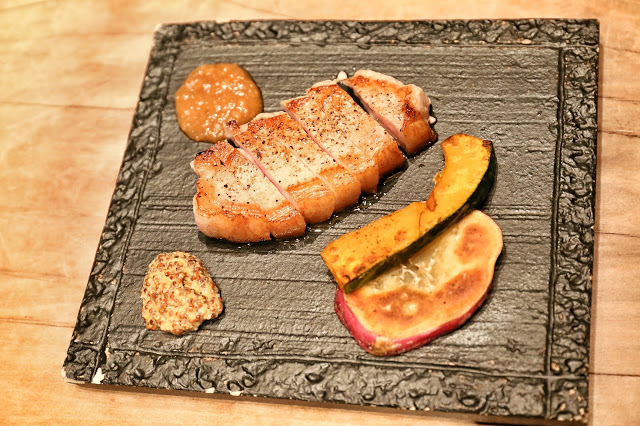 再來更赤裸裸肉色誘惑:A4 宮崎和牛厚燒 A4 Miyazaki Wagyu Beef Steak (60g) 拌著岩鹽板、蒜粒及燒野菜上檯,牛肉吃時先往鹽板上拖一拖,更令帶出和牛的肉香油香,超滿足!特別一提,和牛不同韓牛,最高等級的 A5 於我會有點太膩,A4 正是個人最愛的等級。