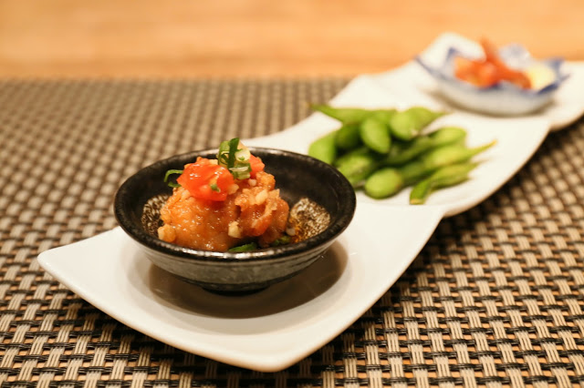 同時也吃了由雞泡魚乾、枝豆及南蠻炸雞組成的小吃併盤,三款各有風味都很可口,我的食用次序是枝豆、魚乾再到炸雞,由清至濃、循序漸進地感受食物的原味、鮮味及香味。