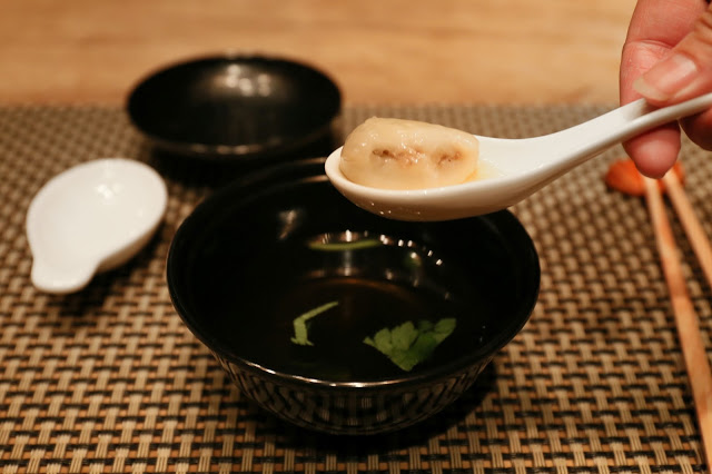 然後有 他他牛肉丸子湯 Tartar Beef Consomme,這牛肉清湯真的清得可以,妙在湯中口感軟糯如湯圓的丸子內,又有著牛肉他他,「鹹版湯圓」效果出奇又討好呢~
