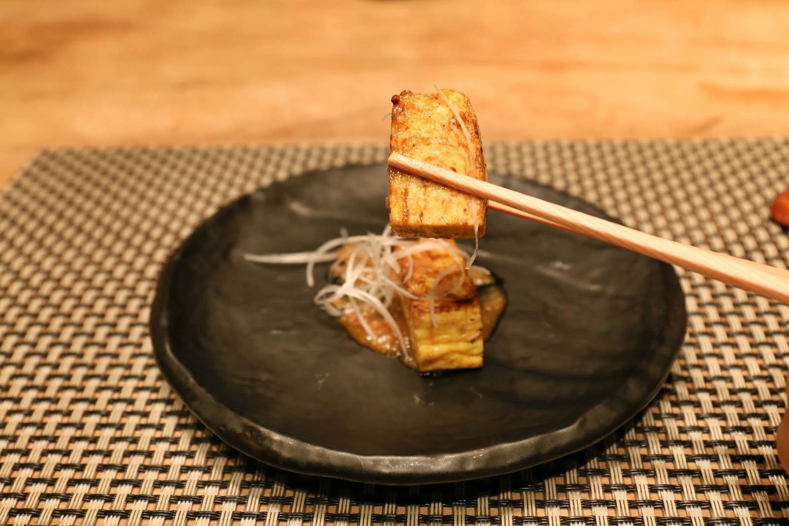 「宮崎和牛宴」由 厚燒玉子 Grilled Japanese Egg Roll 開始;很喜歡厚燒的玉子,味甜多汁,最妙是配上微帶辣意的自家製麵豉醬,份外醒胃、為之後一連六道和牛菜式打開食慾!