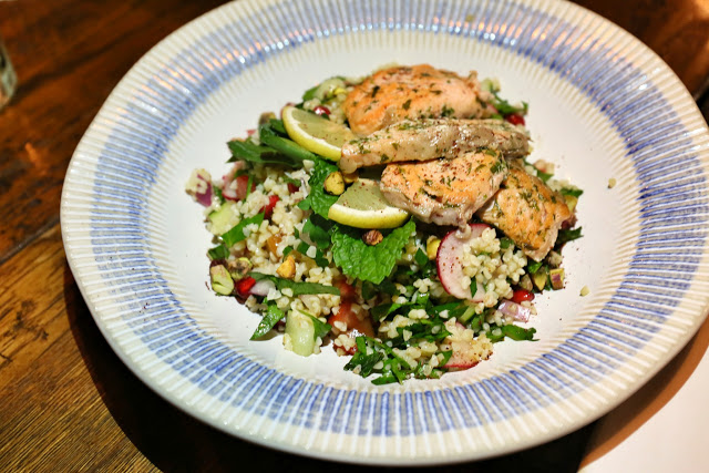 另一款是 Tasty Tabbouleh Salmon Salad ($188),含豐富 Omega 3 的三文魚扒拌上新鮮蕃茄、紅蔥、薄荷、小米,再加進石榴果、脆開心果等,比前一款沙律有更多蛋白質,而且兩款都飽肚感十足~