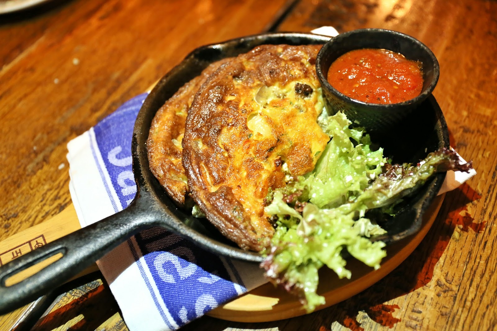 另一主菜是 My Own Brother's Healthy Frittata ($148),以自由放養農場的雞蛋製作的蛋批,中間是紅黃椒、蘑菇、茄子及芝士等,以焗代煎關係油分不多、特別香口,吃時拌上意大利沙律及辣醬,滋味很讚,蛋迷必試!