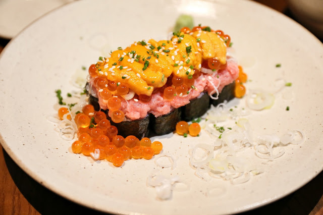 一來就點了 Kikusan 卷 ($68),由海膽、三文魚籽、免治拖羅、蔥及青瓜卷組成既豪華又龐大的陣容,以這定價實在太超值,每人一份應該都飽了!而味道也實在鮮甜美妙,必點推介!