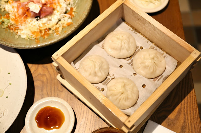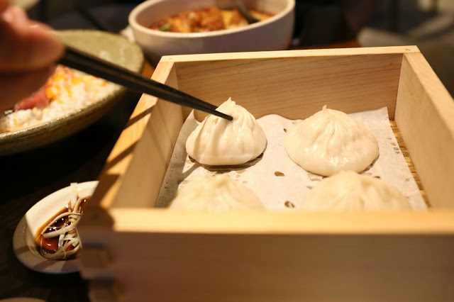 介紹完日式的餐點,又到中式的點心;豚肉小籠包吃得多,這晚點了 雞肉小籠包 Steamed Chicken & Soup Dumpings ($46/4件),成品皮很薄,肉餡及湯汁都比豬肉的清甜些,吃起來沒那麼膩,挺討喜!