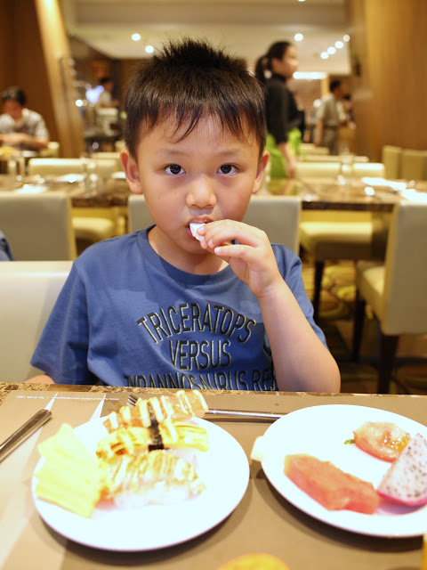 進到食物區,先是切件水果,包括 buffet 打底之寶火龍果、清甜菠蘿、蜜瓜,以及清熱一流的西瓜。之後又有不同的現成沙律及冷盤,如:煙鯖魚柳、茄子沙律、海鮮沙律、涼拌豆干竹筍、扒雜菜沙律...