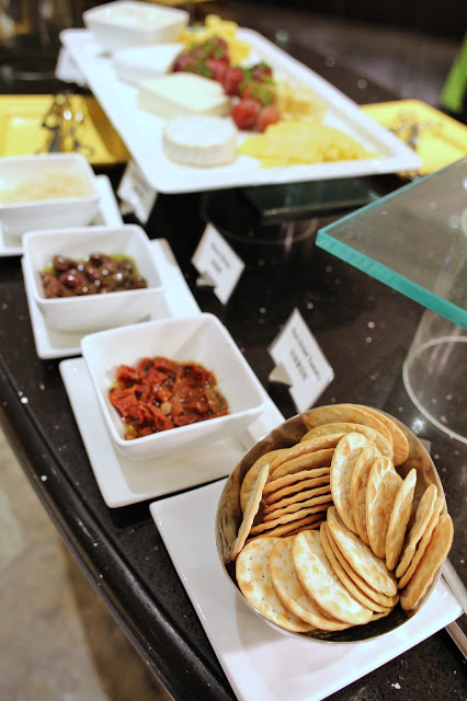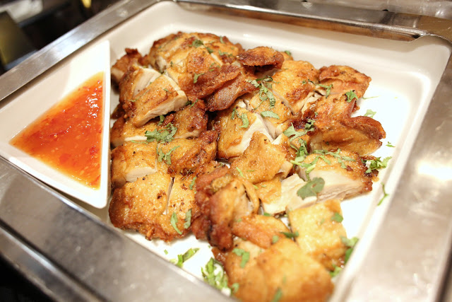 緊接冷盤及芝士的長檯上,還有供應:櫻花蝦蟹子炒絲苗、燒雞扒、香煎龍利柳(好吃!)、芝士年糕(新鮮出爐仍飽滿時好吃)、花蜜黑椒牛仔骨、椒鹽白春魚、蟹肉冬菇冬甫盅、兩款精選時蔬等等美食,總有一款合你胃口!