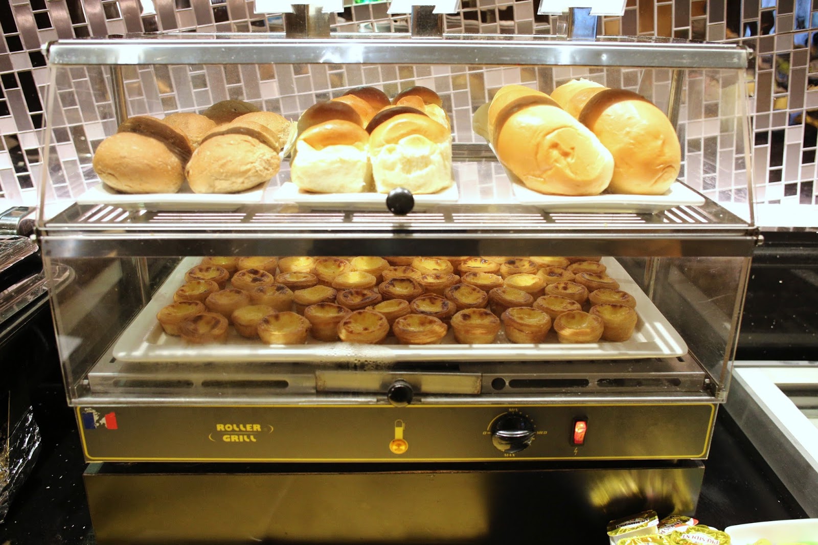 另一邊還有不太甜的好吃爆谷、豆腐花、蛋白杏仁茶、麵包牛油布甸配雲呢拿汁、葡撻、鮮奶包、提子包,還有新鮮出爐的焗疏乎厘、Häagen-Dazs/Dreyer's 雪糕杯,以及特別榴蓮、大樹菠蘿口味雪條!