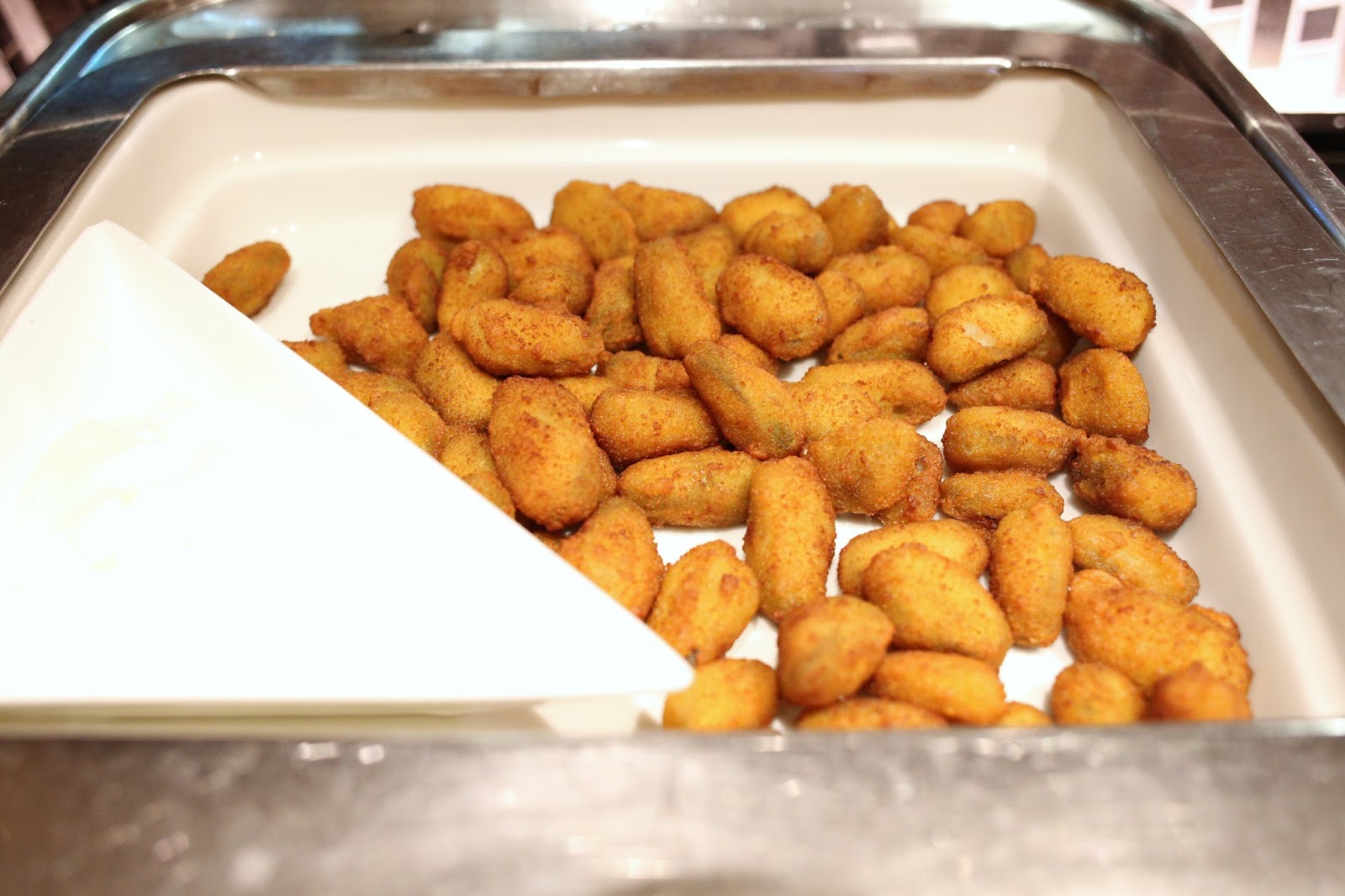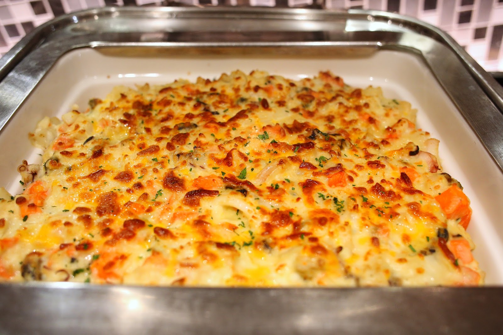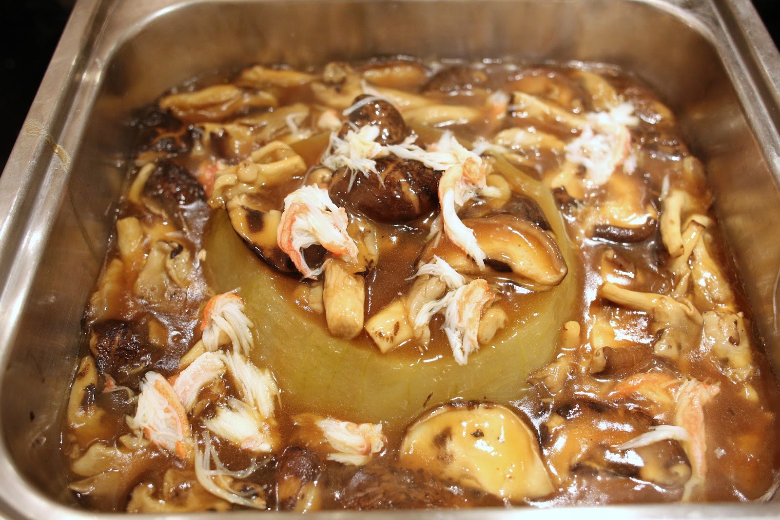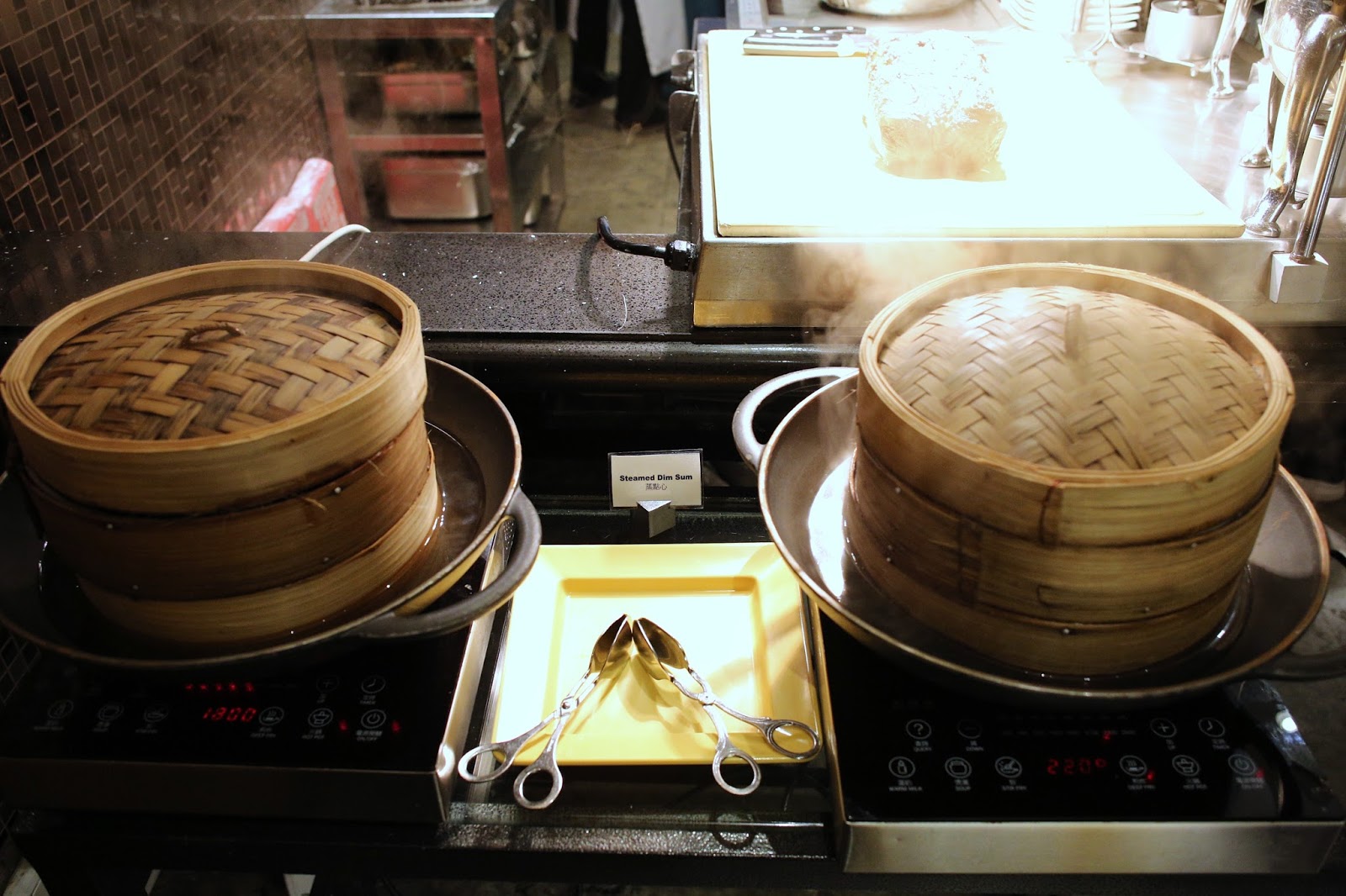 緊接冷盤及芝士的長檯上,還有供應:櫻花蝦蟹子炒絲苗、燒雞扒、香煎龍利柳(好吃!)、芝士年糕(新鮮出爐仍飽滿時好吃)、花蜜黑椒牛仔骨、椒鹽白春魚、蟹肉冬菇冬甫盅、兩款精選時蔬等等美食,總有一款合你胃口!
