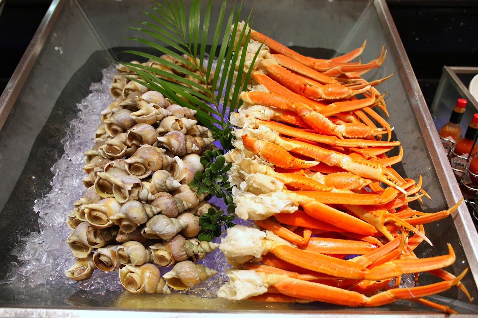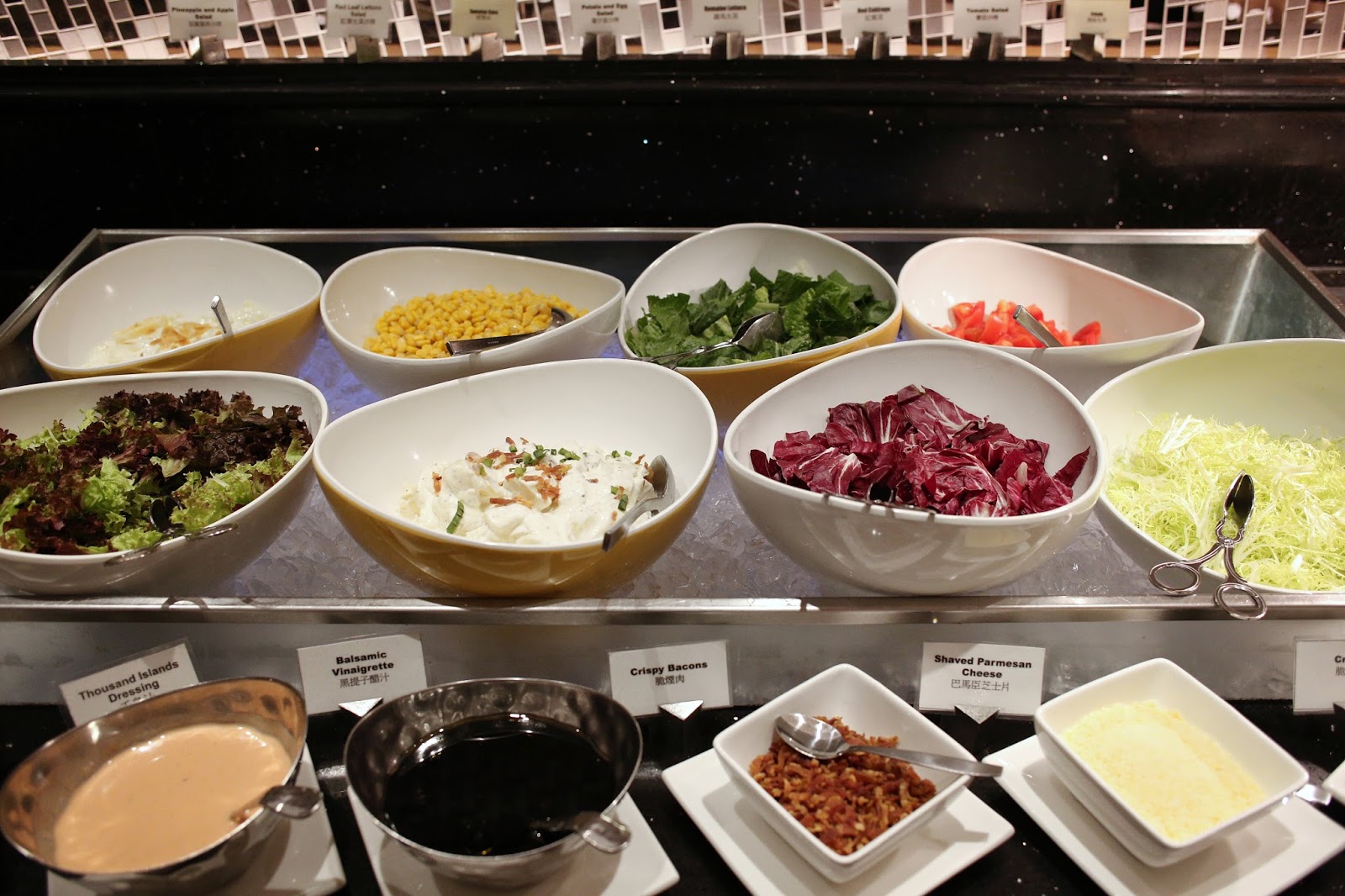 靠牆的一邊又有更多凍海鮮及沙律吧,當晚海鮮有青口、海蝦、海螺、皇帝蟹腳(鮮甜必食);沙律吧則提供:凱撒汁、日式芝麻醬、千島汁、黑提子醋汁、脆煙肉、巴馬臣芝士片、脆麵包粒,以及不同款式的沙律菜,任君選擇配搭~