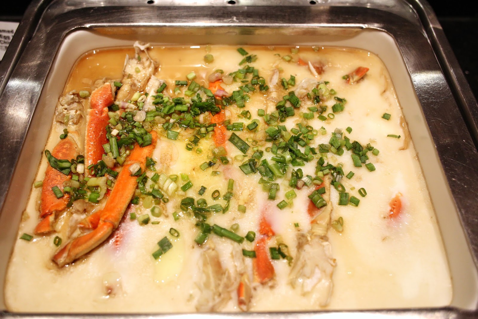 由於這區多長者,餐廳設有特多的熱盤,而且水準也很好,非常適合越來越喜歡主攻熱食的我!首先是酒味不濃、口味清淡的花雕蛋白蒸皇后蟹,以及香濃惹味的泰式咖喱麵包蟹,我愛死後一款了,一連 encore 了兩次!