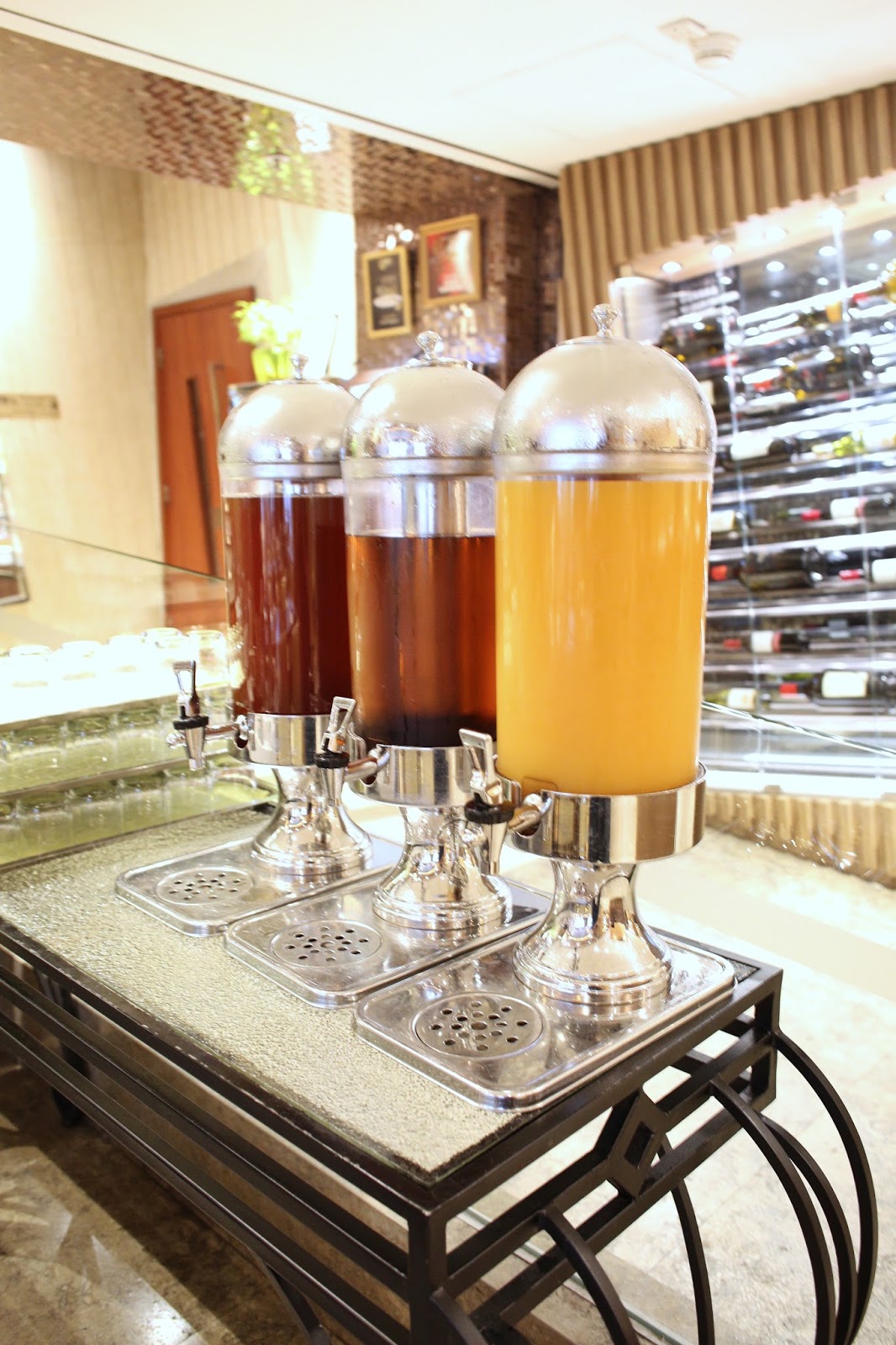 這裡的自助晚餐是6點開始,約5:30pm左右門外已有食客等待,平日晚上也有8-9成滿,魅力可見一斑,所以訂位(最好經 E-shop 買餐劵再訂位,享受最大優惠)是必須的。進場後先見到任飲橙汁、蘋果汁及凍檸茶,另一邊還有自助熱茶/咖啡/檸檬汁等。