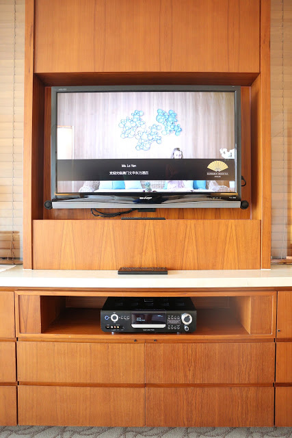 也是時間好好欣賞我的豪華湖景大房了:睡過不少高床軟枕,文華的鵝毛床寢是最滑身舒適的,睡在上面完全不想下來!對面就是高解像 LCD 電視,配有自選數碼影音內容,包括最新電影,又有優質影音系統、室內互動娛樂系統,能夠整合 iPod 或 MP3,非常方便。