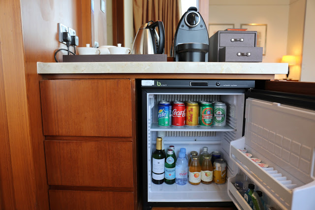 那杯茶又是那來的?原來在客房又有 Nespresso 咖啡機,以及全套茶壺茶杯套裝連茶包,無論是想喝甚麼來配點心,都沒有問題啦~房內另設雪櫃及酒櫃(沒拍),總之是應有盡有。