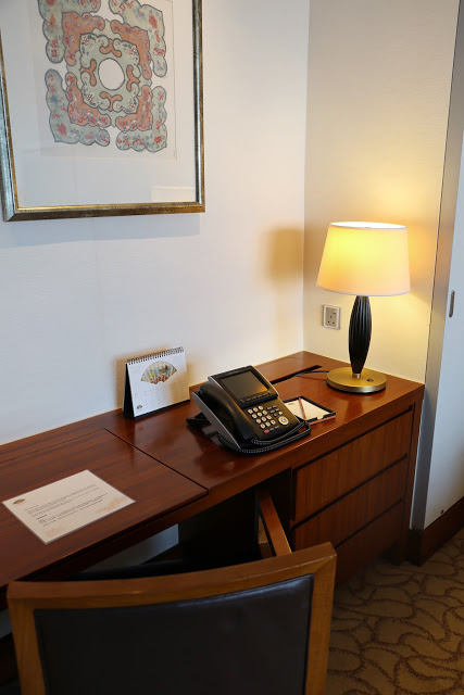 而在書檯那邊,除了月曆、可以接駁專線的電話,又有 USB 直接取電服務(共有兩個位置),非常方便像我這樣的手機高用量群眾。