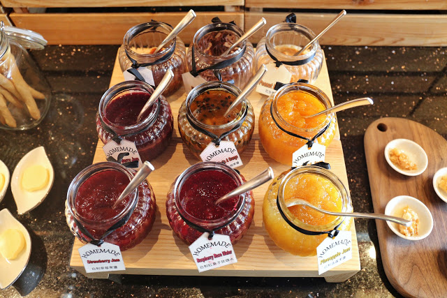 果醬選擇也非常豐富,當然也不得天然又健康的蜜糖、牛油,還有更多果仁、配料等等。而麵包選擇更是豐富,各式各類的 muffin、酥餅、牛角包應有盡有,大胃王也未必吃得完!