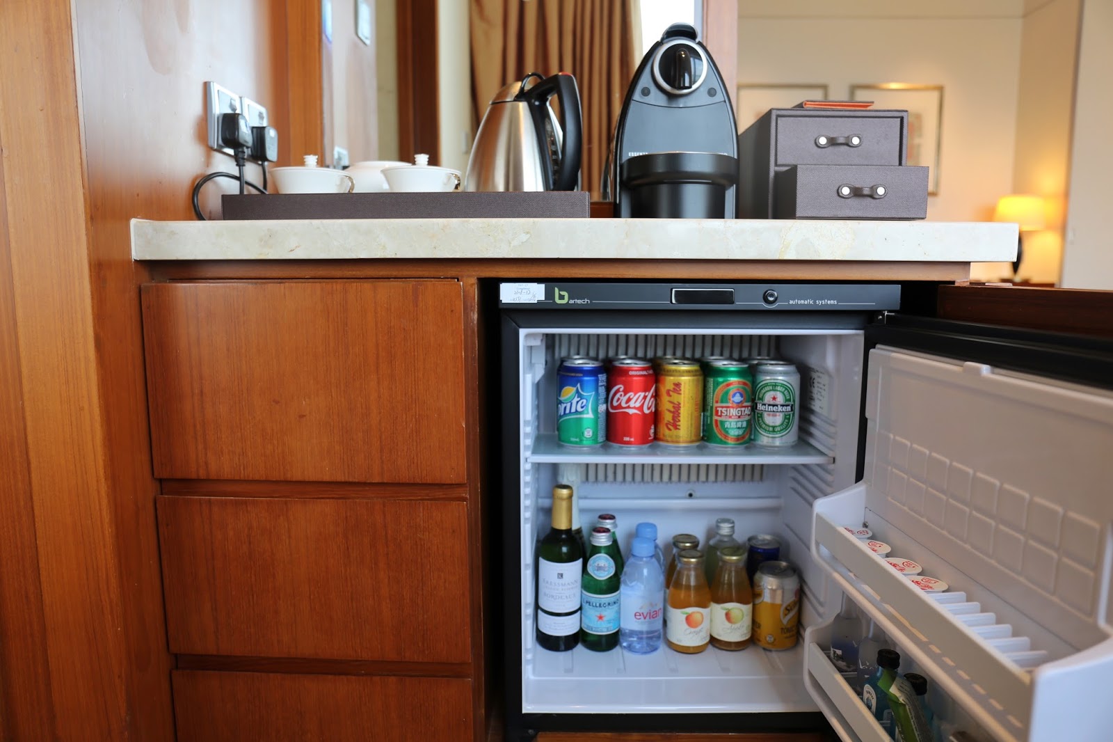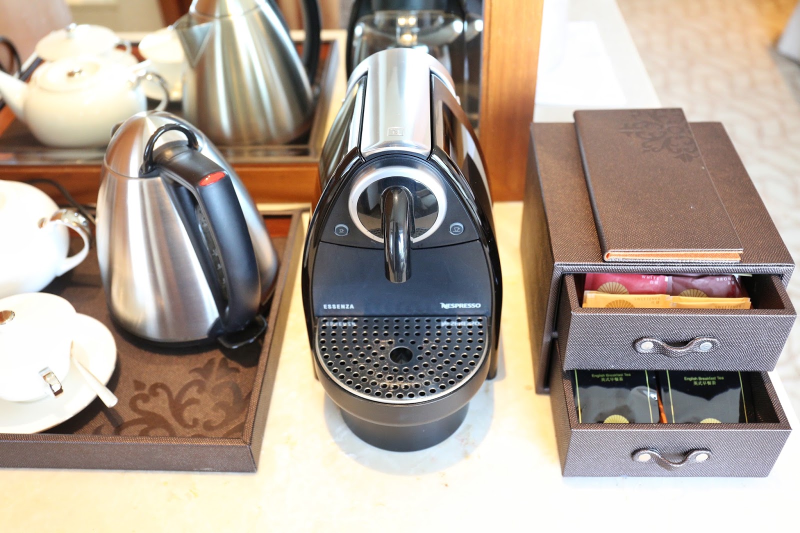 那杯茶又是那來的?原來在客房又有 Nespresso 咖啡機,以及全套茶壺茶杯套裝連茶包,無論是想喝甚麼來配點心,都沒有問題啦~房內另設雪櫃及酒櫃(沒拍),總之是應有盡有。