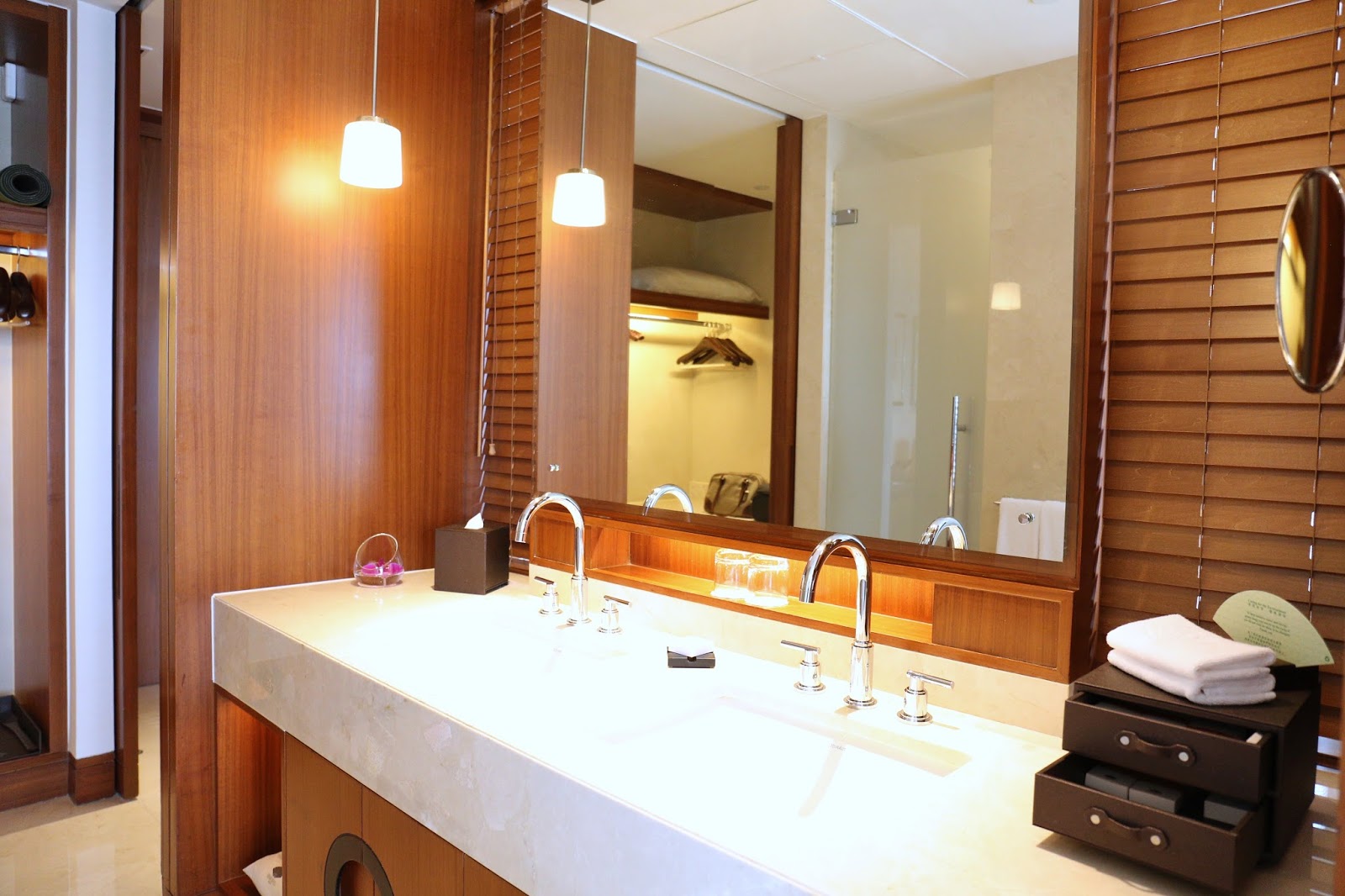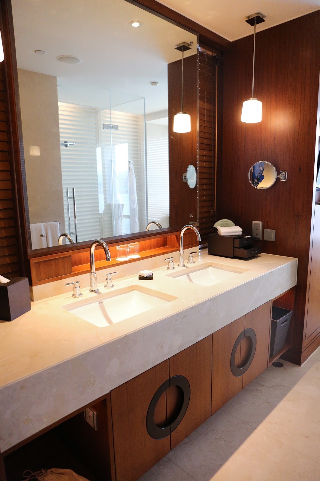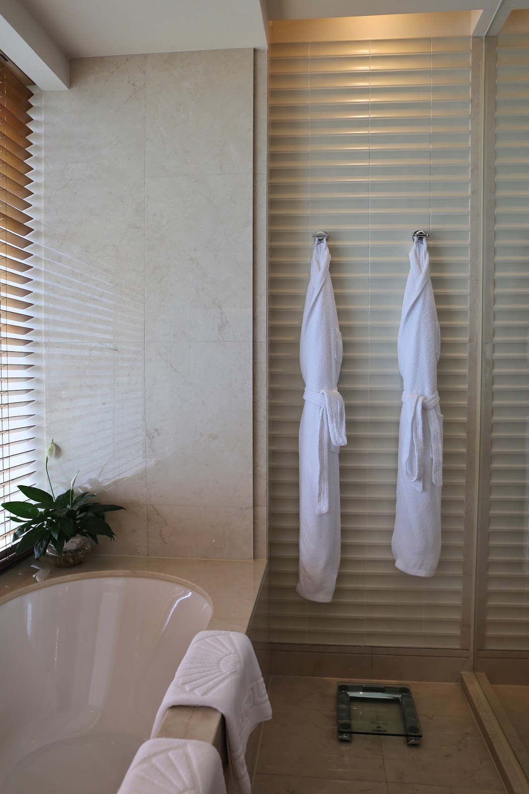 最後浴室也非常巨大:兩人流手盤、特長靚景浴缸與特大淋浴間,Aromatherapy Associates 品牌的洗沐用品,還有舒適高級毛質浴袍,令每天例必進行的沐浴變成美好享受!