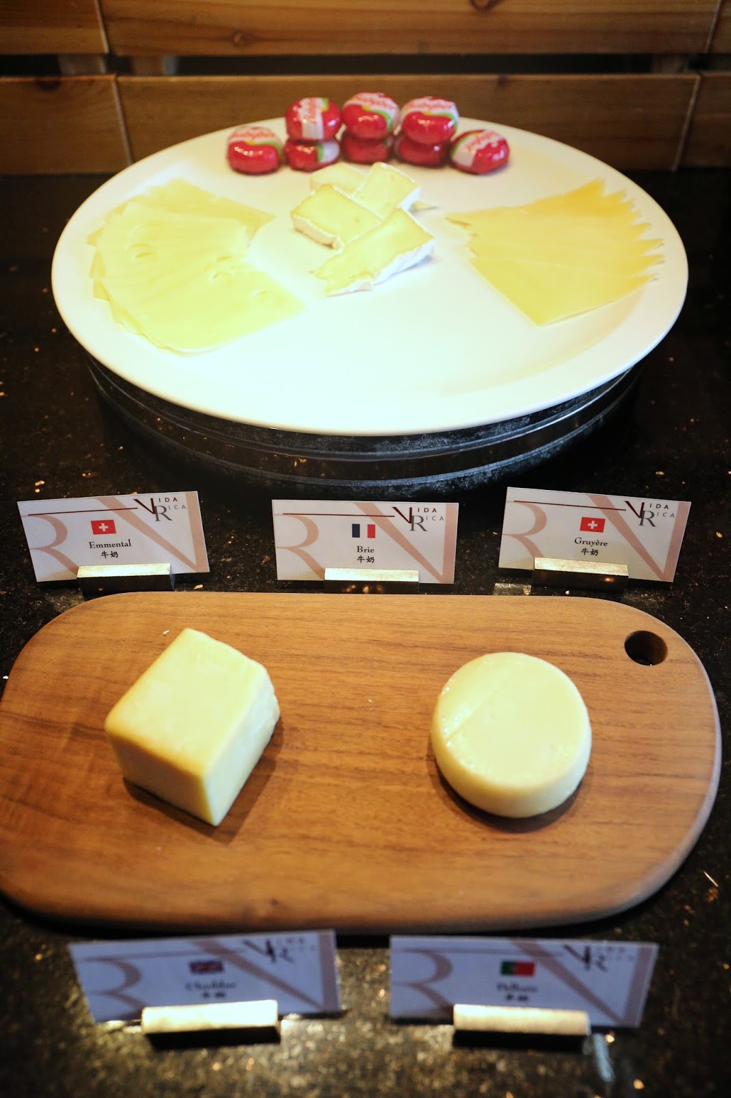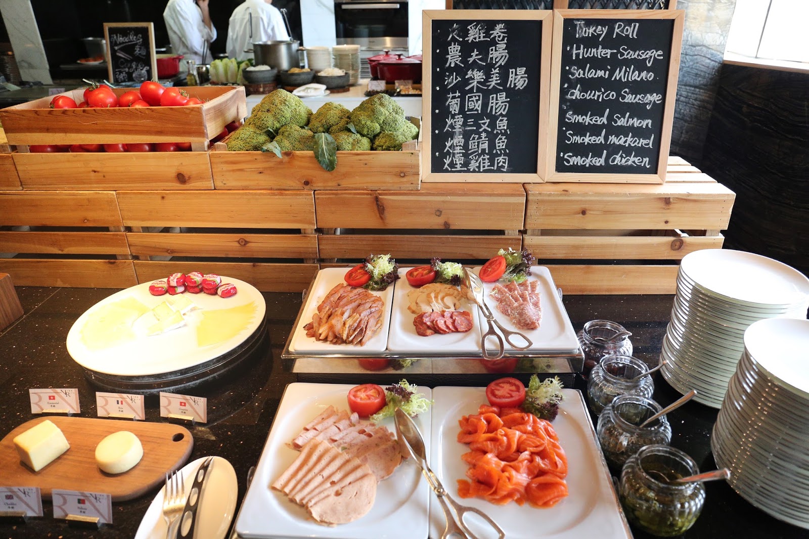 在裡面的長檯上,又有著火雞卷、農夫腸、莎樂美腸、葡國腸、煙三文魚、煙鯖魚、煙雞肉等等凍肉選擇;芝士也有 Emmental、Brie、Gryuere、Cheddar,以及個人很愛的 Babygel!