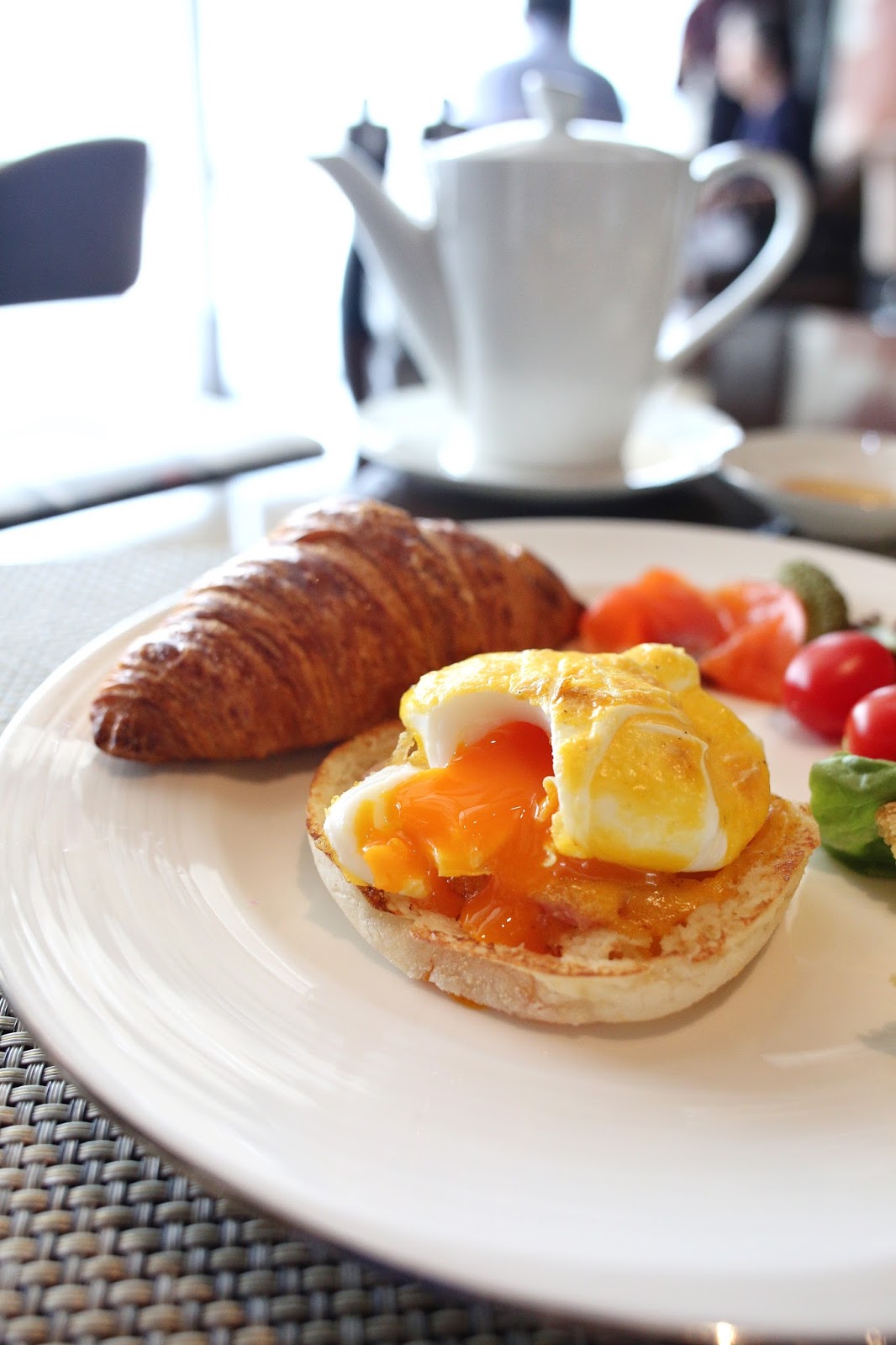 感冒初癒,胃口不算太好;一來到點了一壺熱茶(要讚經理非常細心,見我慢條理斯拍照回來,會主動奉上另一杯熱茶!),之後又是習慣性地取了水果、乳酪,加上少量中式點心及最愛的 Egg Benedict,就開餐了~ 這天還加上排毒飲品、果醋、阿麻籽及蜜糖,更加健康!