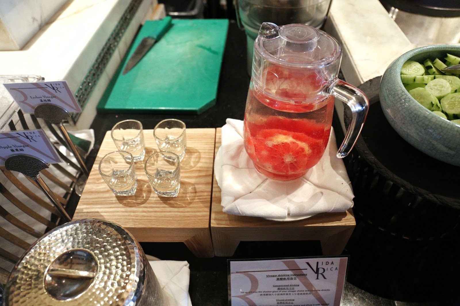 飲內又有蘋果醋及荔枝醋,怕酸的食客可拌混西柚水(比例1:10)享用,也可以直接倒入玻璃杯內享用,增強刺激腸胃蠕動的效果!