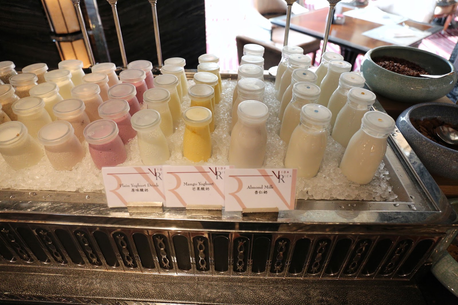 在對面的早餐桌上,還有清甜的切件西瓜、哈蜜瓜、蜜瓜、鮮橙、火龍果、菠蘿,以及原個鮮橙、青蘋果、紅蘋果、香蕉、梨子等。場內又有鮮牛奶、杏仁牛奶、低脂奶、原味酸奶、芒果味酸奶、原味乳酪、藍莓味乳酪、草莓味乳酪,甚至是少見的阿麻籽及多款穀物!