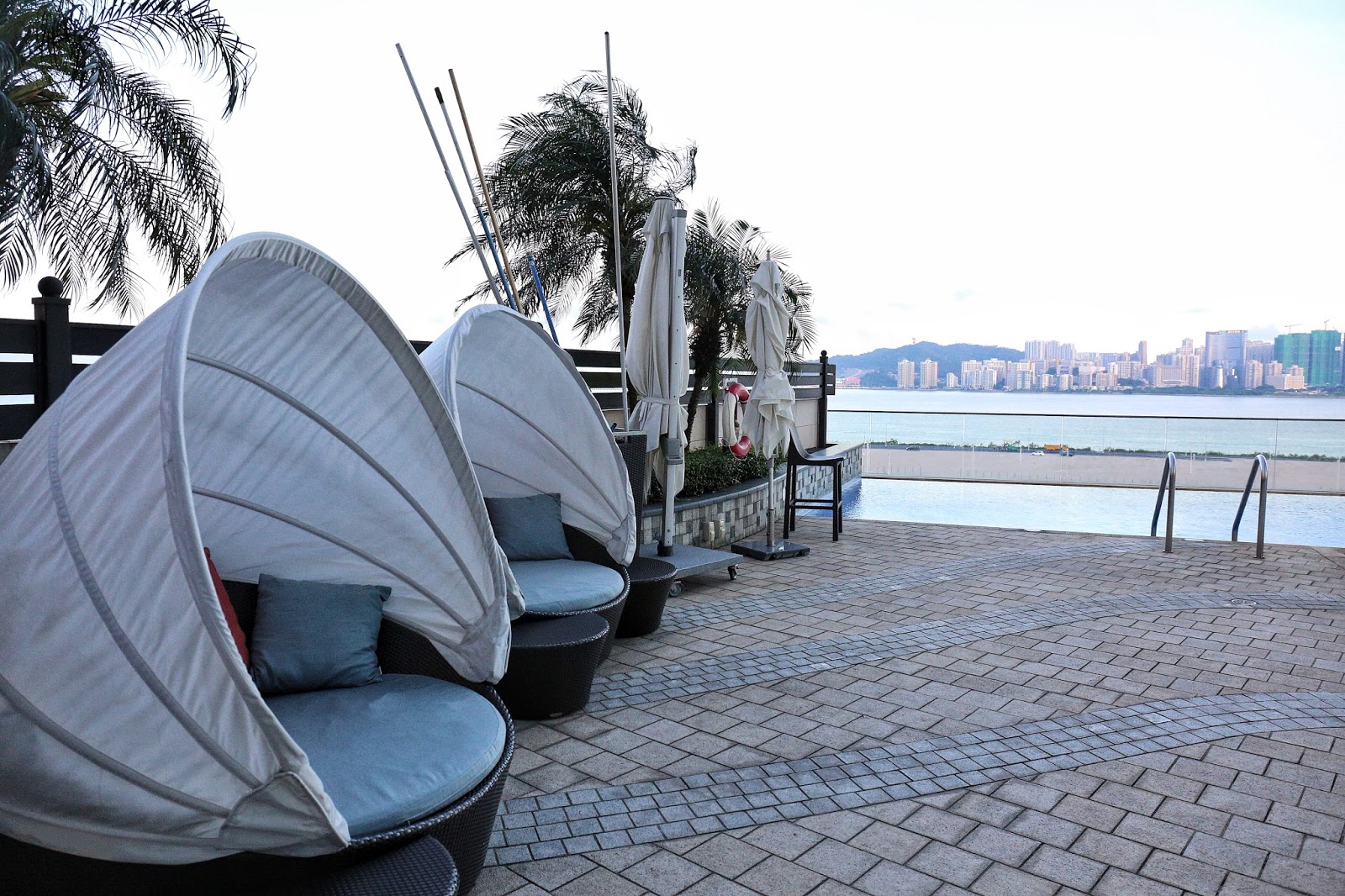更加棒的是泳池免費提供蚊怕水、Anessa 防曬及 lotion 等,非常細心;而同樣享用開揚美景的健身房就在泳池另一邊,也是上午7時 – 晚上10時開放,喜歡運動的朋友,不要錯過了。