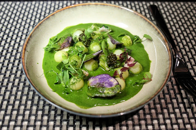 超愛接著這 Blue lobster ravioles printed with herbs 藍龍蝦香草意大利雲吞 ($680),選用自家製小意大利香草皮雲吞,裡而釀有龍蝦肉及軟羊奶芝士,新鮮的出品超滑又嫩!伴以清爽的小南部蔬菜球、龍蝦醬汁以及龍蝦濃湯,每啖都是鮮美、吃完齒頰留香~