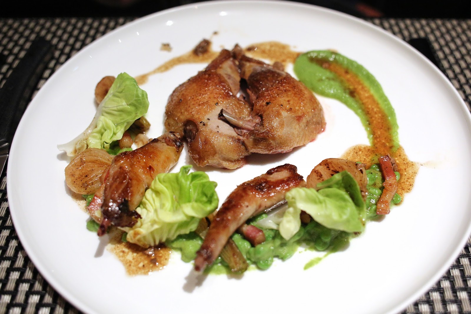 添上紅酒,又來到主菜時間:非常推介 Roasted pigeon “French style” 烤法國乳鴿 ($640),乳鴿烤得皮脆肉嫩甜,同上的青豆、焦糖洋蔥、煙肉等法式配料也合心,更重要是以乳鴿汁及內臟製作的 salmis 醬汁起了畫龍點晴的作用,菜式份量又足,令人吃得甚為滿足!