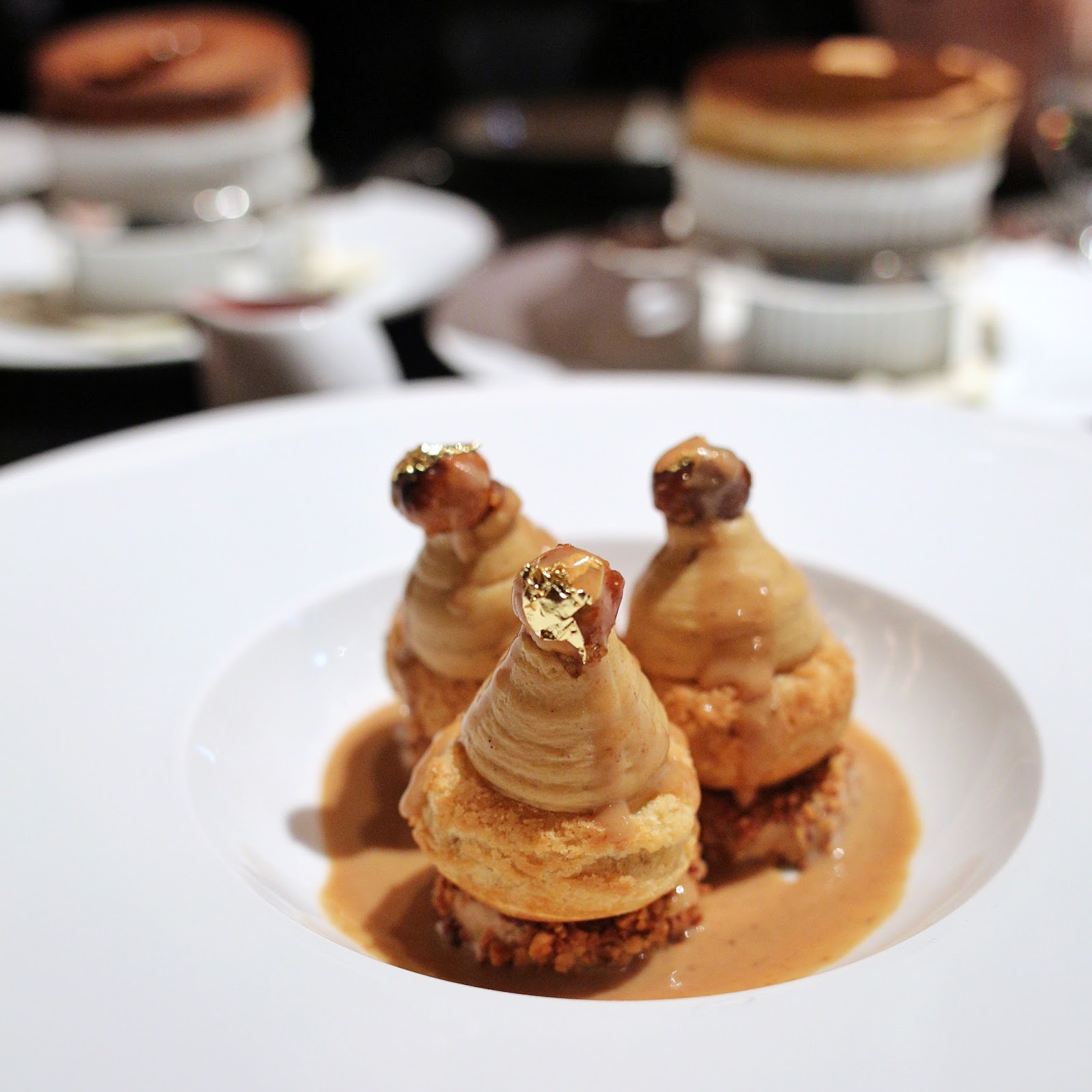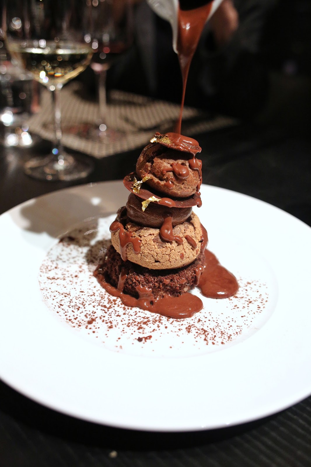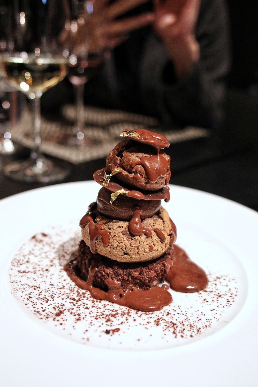 朱古力迷不能錯過這 法國 ‘Religieuse’ 朱古力泡芙塔 ($290) 吧?半溶70度朱古力雪糕上是牛油朱古力餅,再放上朱古力吉士餡的朱古力泡芙及焦糖榛子,以及Espelette辣椒朱古力,成品集香濃與刺激於一身!