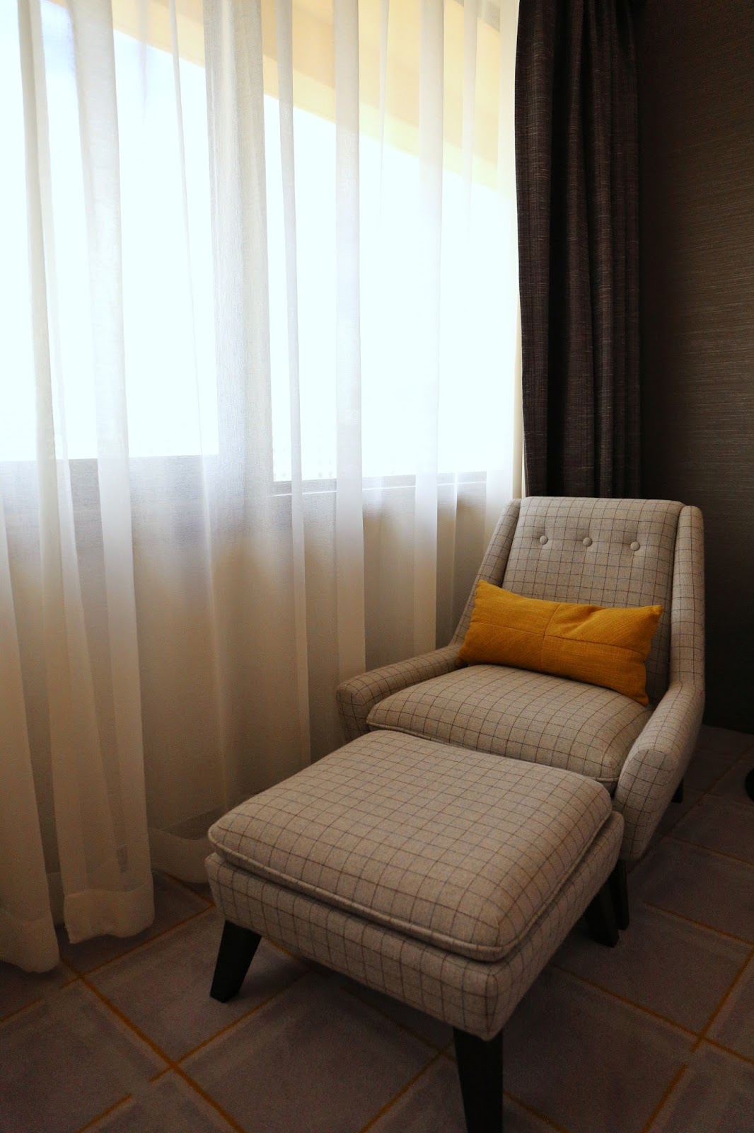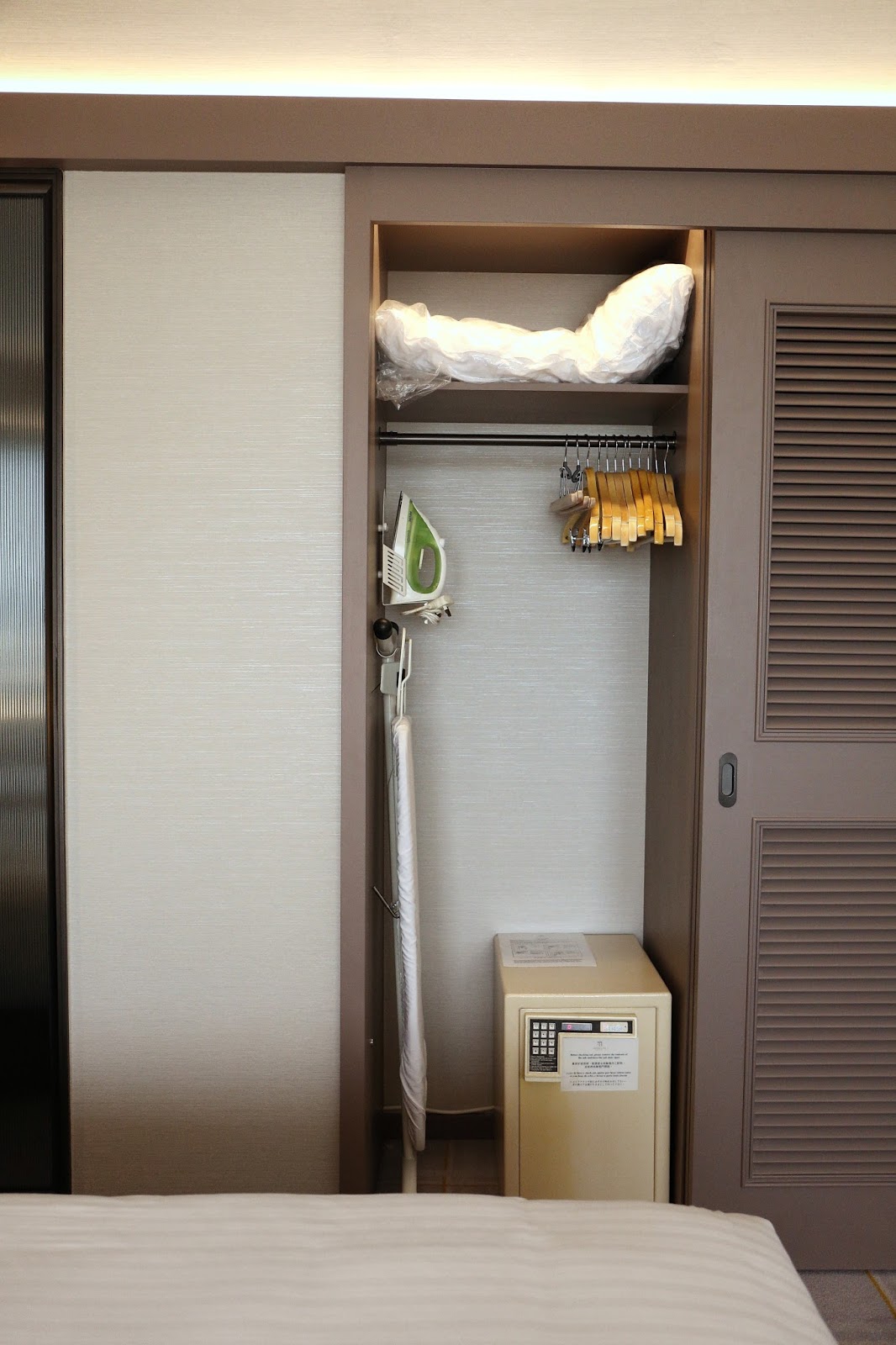 床的另一半有點亂,只拍了一邊,但感覺與前年一家到訪時,70-80年代的懷舊感覺完全不同了!又新又摩登的房間內,衣櫃、夾萬、熨斗等等都是隱藏式,予人簡潔高雅感;床的另一邊則是舒適躺椅,喜歡曬太陽又怕熱的,大可在這裡涼著冷氣享受日光浴~