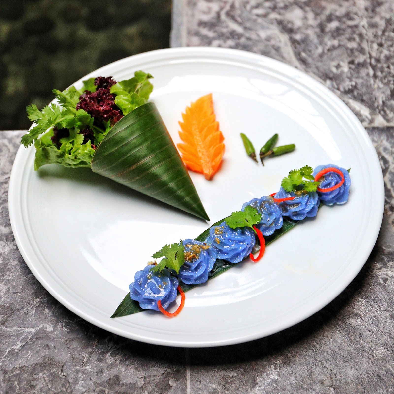這裡以供應精緻的泰王宮廷美餚馳名,這天也點了 Steamed Thai dumplings in flower shape with prawns 泰式蒸花形免治蝦肉餃 (MOP $115),藍免的蝦肉餃又美又好吃,必試之選!