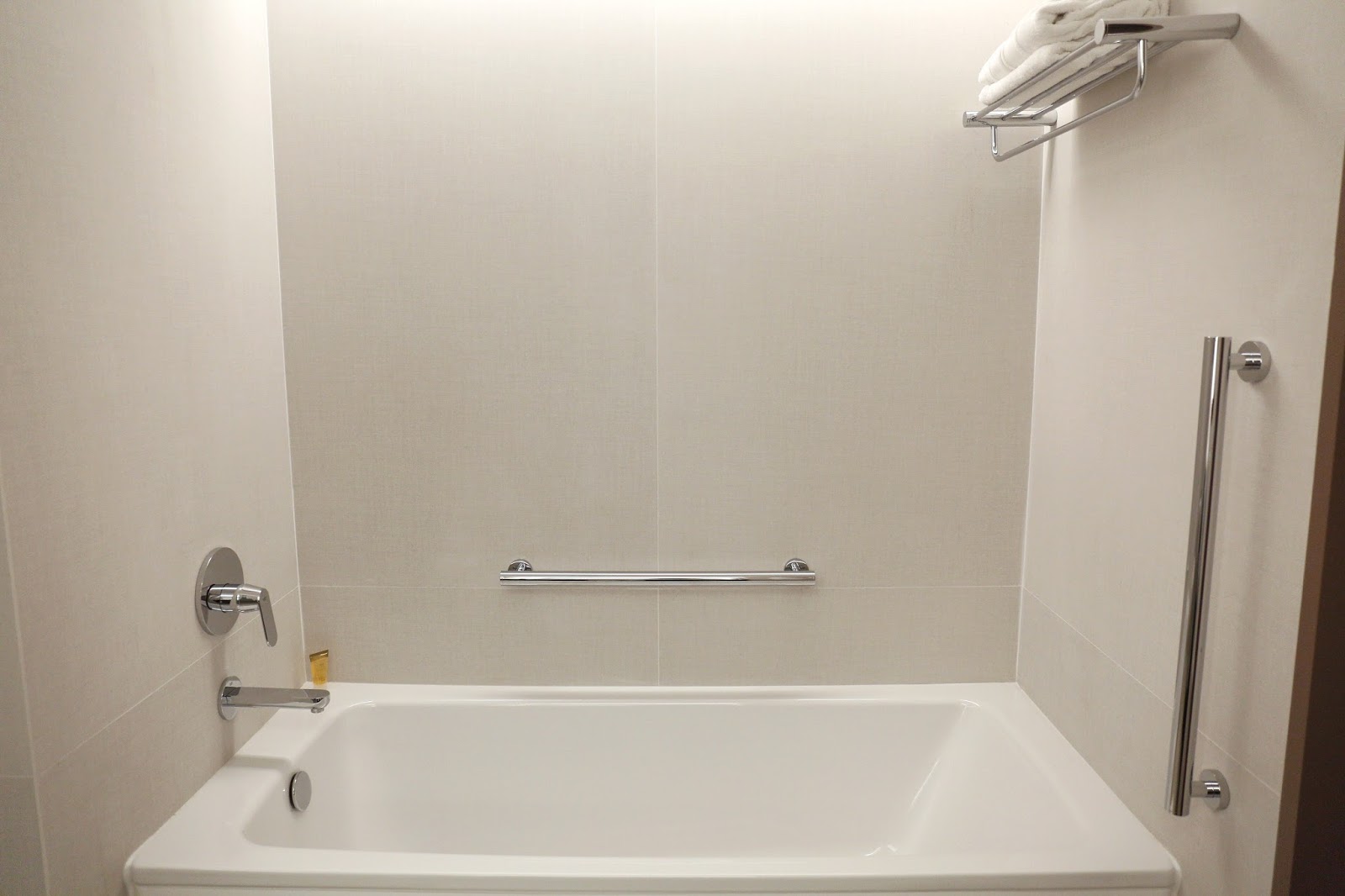 與睡房一樣,用品都是隱藏在洗手檯兩邊的櫃內,應有盡有,同時更顯清爽雅潔。抵達的首晚,甜魔媽媽也不客氣,先淋浴洗乾淨頭髮及身體,再到浴缸去泡;兩邊水力都很足,所以又快又舒服!