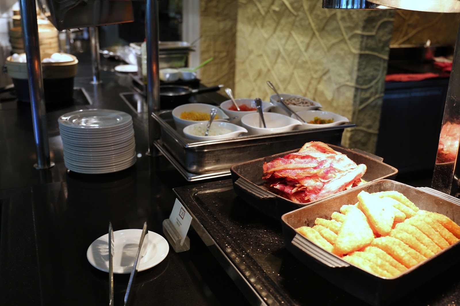 熱盤選擇也不少,西式的、中式的,鹹的、甜的(熱香餅、西多士、waffle之類)也有供應,同時也有 Live egg station,以及數款中式點心如燒賣、糯米雞等選擇。