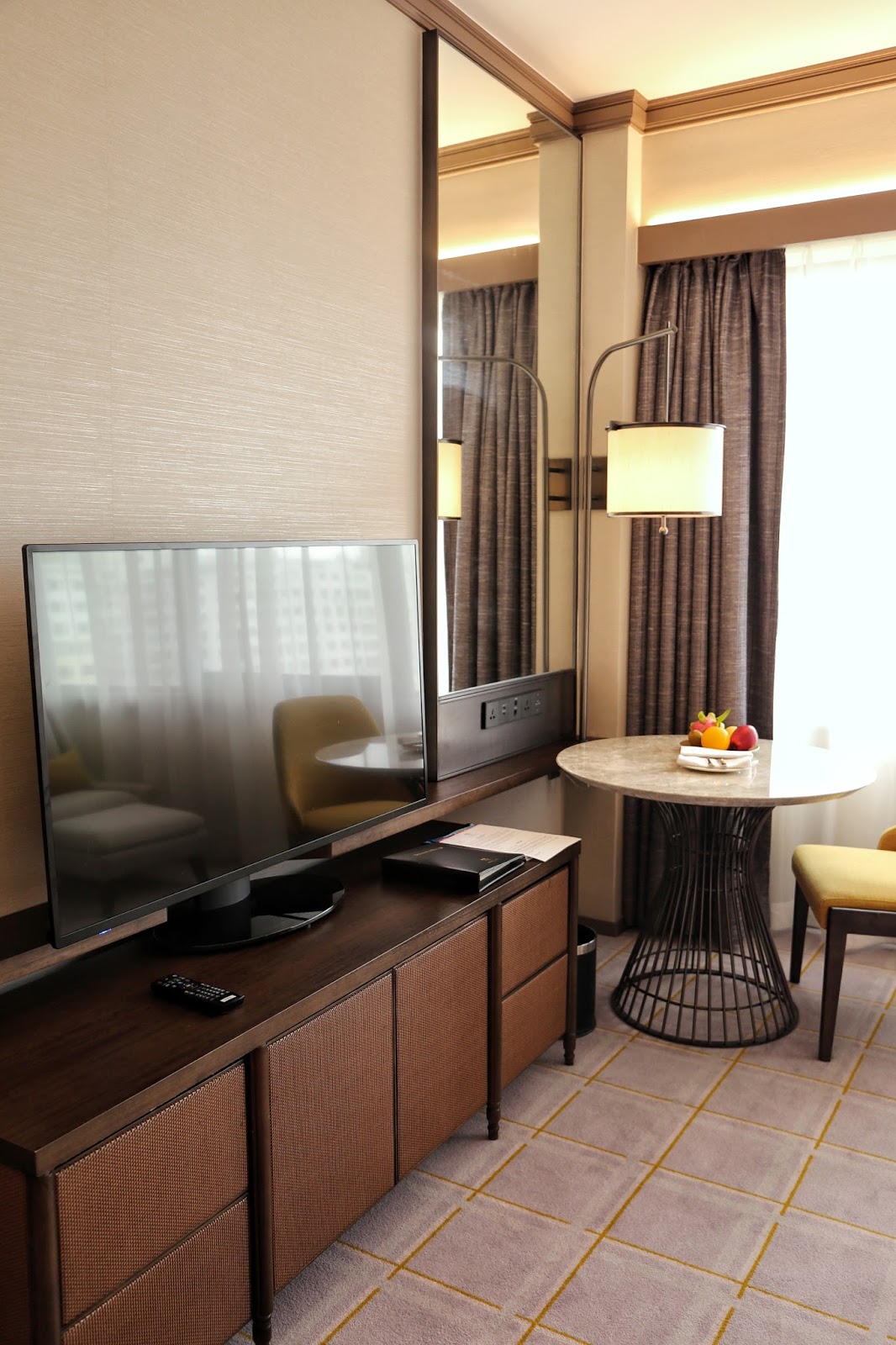 舊式的大牛龜電視也已換上全新平面電視,另一邊的小圓桌連吊燈也設計優美,檯上又擺放著新鮮迎賓水果,以及免費奉上的小茶點,十分貼心。