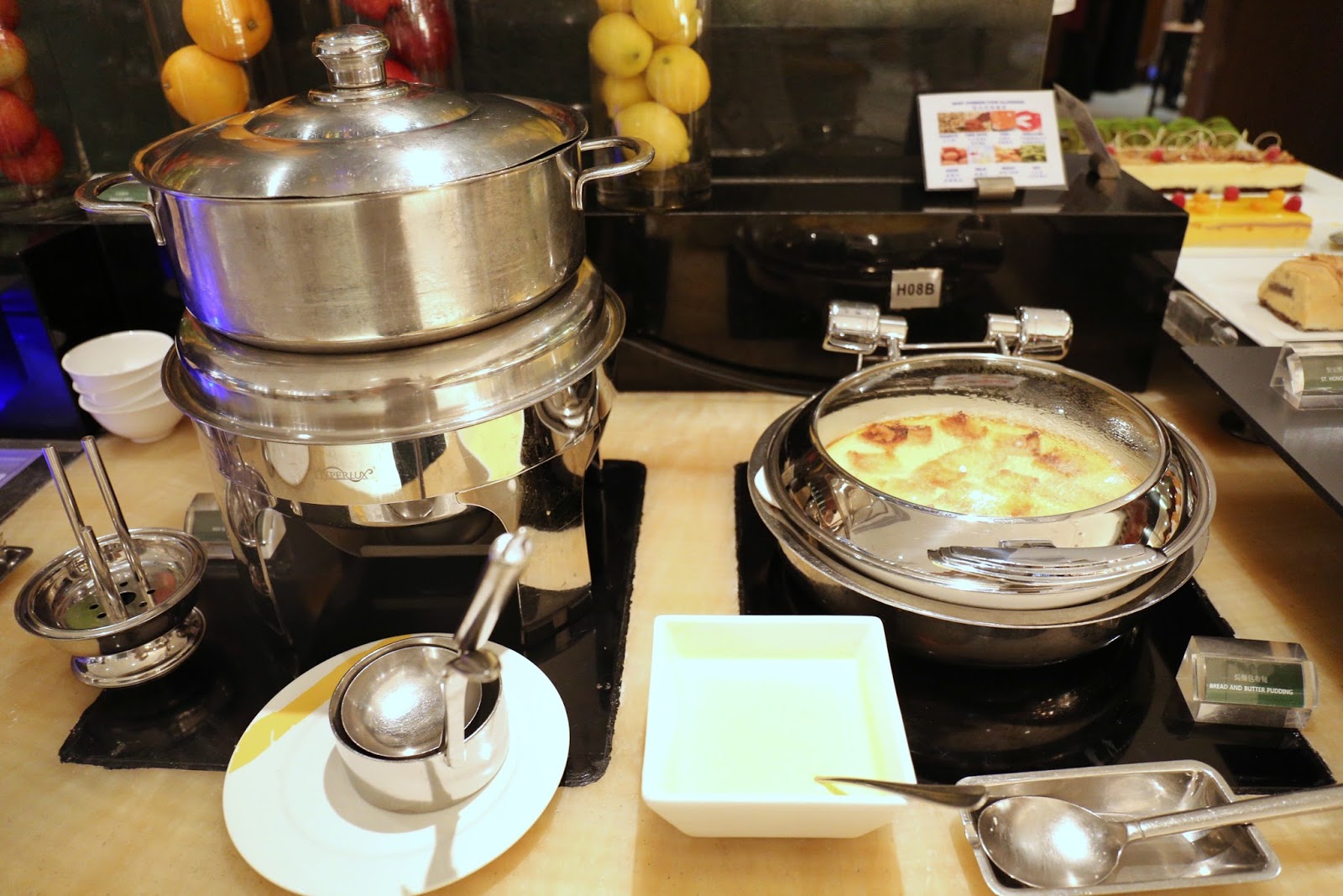 還未介紹甜品呢!選擇也非常多,焗麵包布甸、熱糖水、檸檬撻、忌廉號角、芝麻芝士餅、脆泡芙千層酥、芒果慕絲蛋糕、綠茶紅豆忌廉卷、焦糖芝士蛋糕、焦糖燉蛋、迷你葡撻,等等,還有更多凍檯內的甜品杯選擇,老實講,甜魔媽媽的我也只試到其中一二!