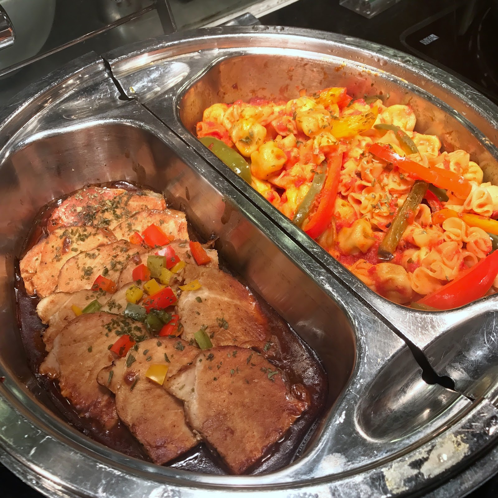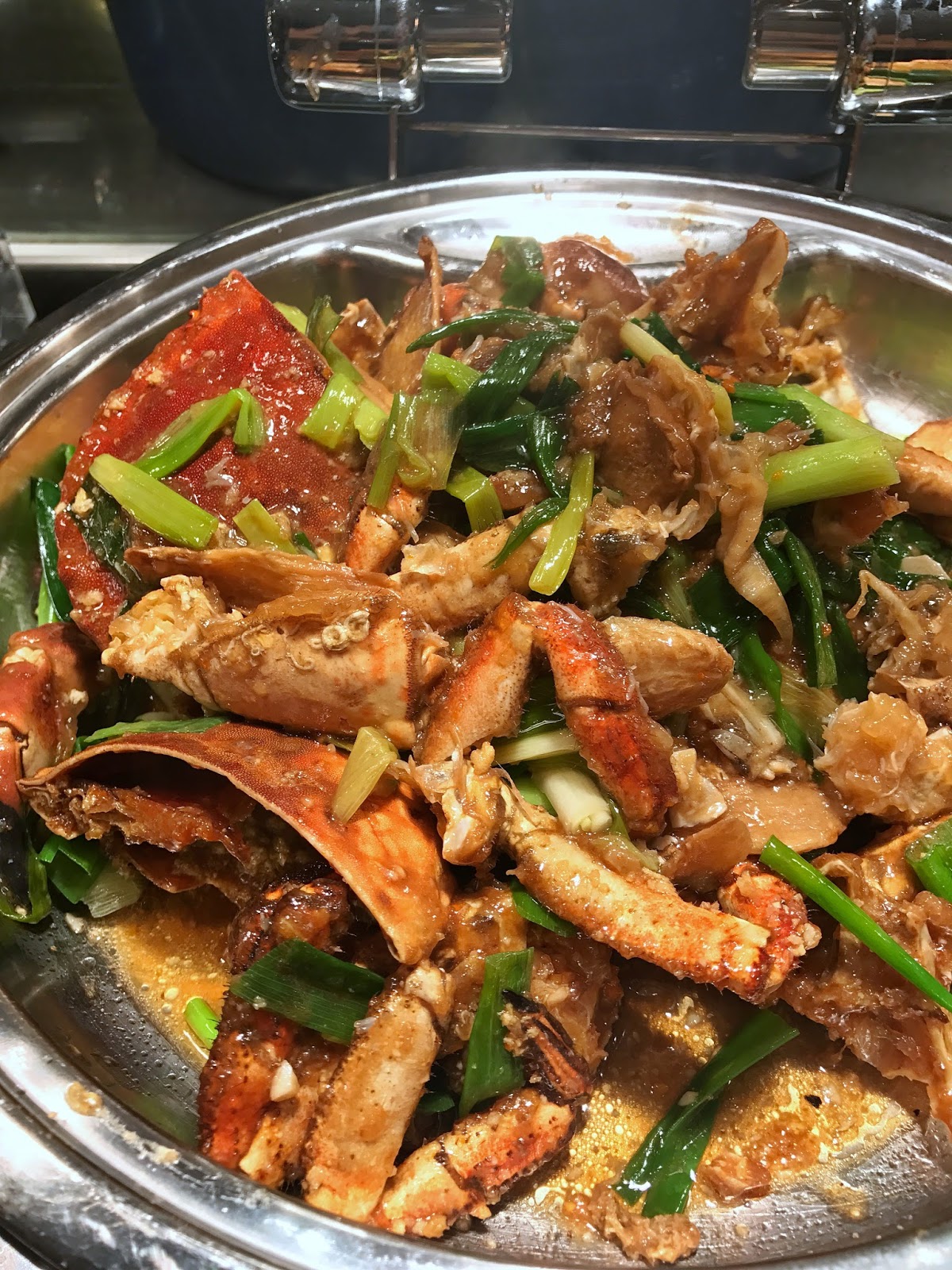 接著到熱盤區,中式西式印式加上燒烤美食,花款又是多得令人眼花瞭亂,選擇困難症的朋友會有痛苦哦!我們搭遲了一船班抵達已近7時(自助晚餐6時開始),但食物不會被搶購一空;首先是蒜蓉粉絲蒸扇貝、薑蔥炒蟹等海鮮美食,相比凍海鮮,這些更合我胃口!