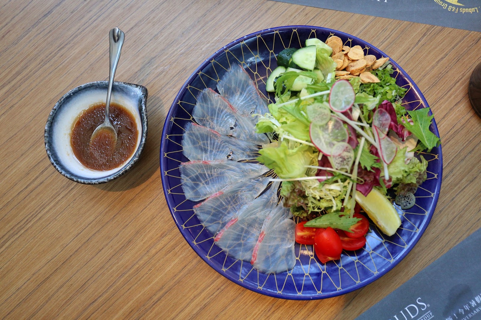 美好的午餐,以 章紅魚柚子酢沙律 開始。薄身剔透的章紅魚刺身新鮮美味,以新鮮柚子皮在醋中預先浸泡一天而製成、帶有獨特柚子香的自家製柚子酢,更是點晴之作,令刺生更添美味。同上的新鮮沙律,加上香脆蒜片,亦令滋味更加美妙~