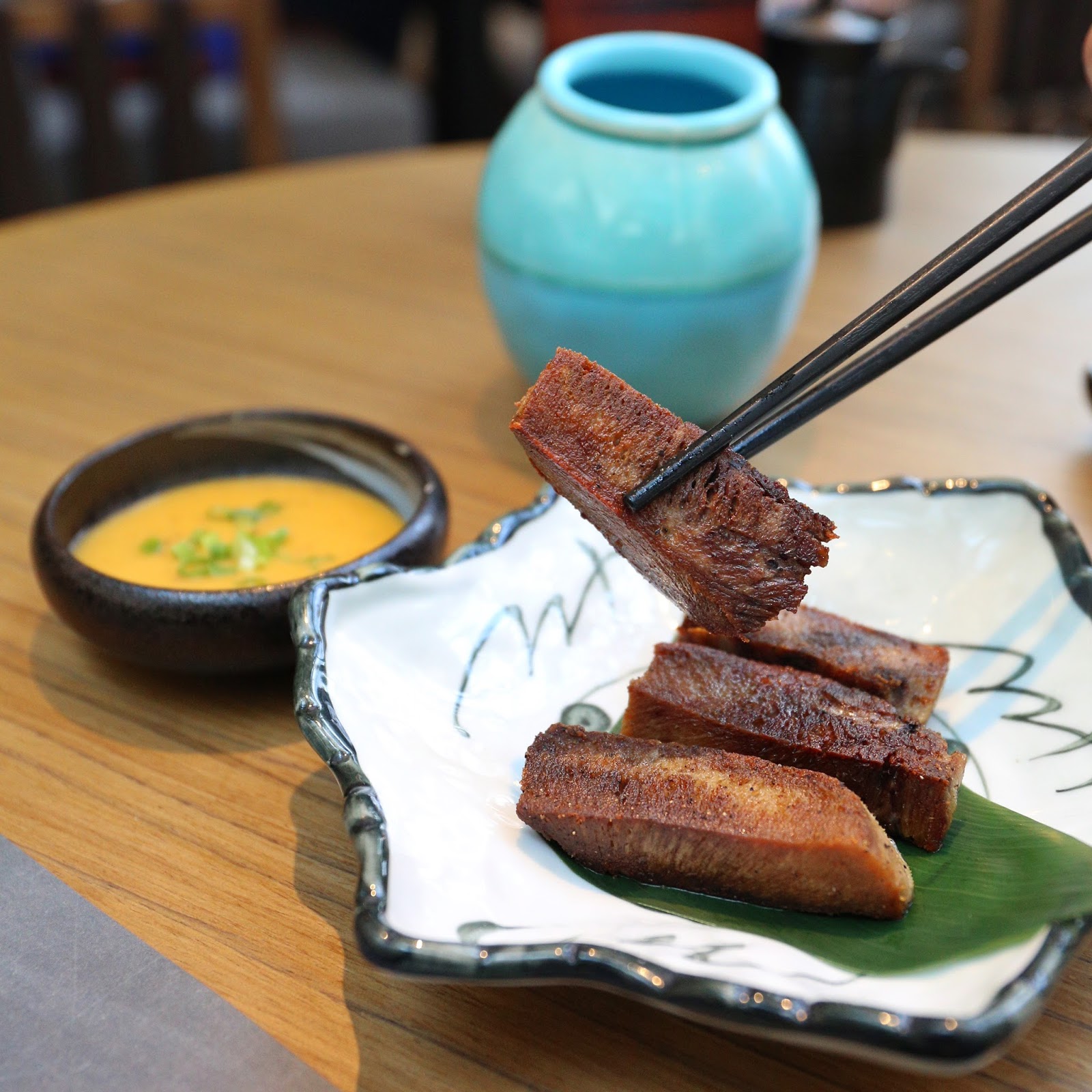 愛吃牛脷的朋友,要記住接下來的 酢麵豉軟牛脷:菜式處理過程相當繁複,才讓牛脷呈現外層酥脆、裡面軟綿仍然多汁的狀況,那份酥香及口感令人難忘,點上自家製的美味酢麵豉,滋味無窮啊!