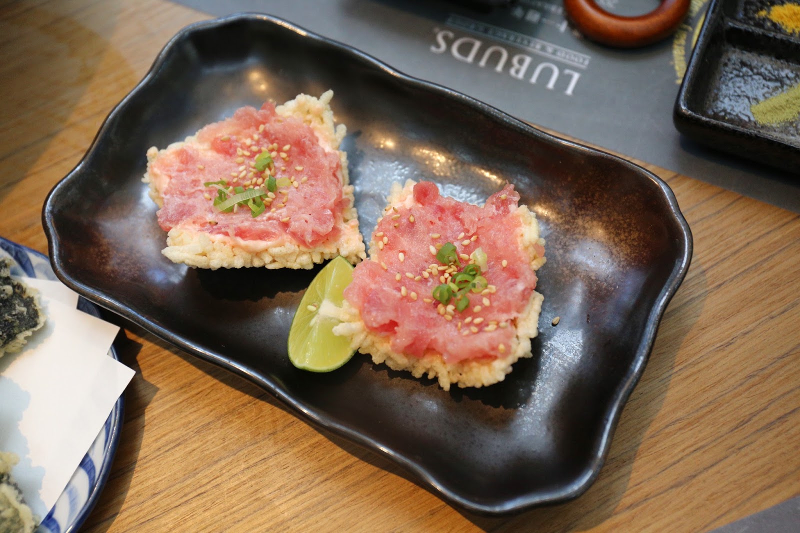 另一款創新美食是 葱吞拿魚腩薄脆,新鮮製起的香脆窩巴,沒想到與肥美的吞拿魚腩蓉十分匹配,又鮮又脆,很快就被我們吞進肚子去了~