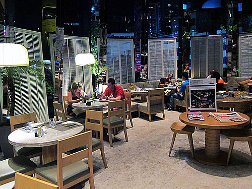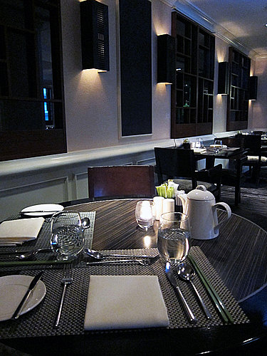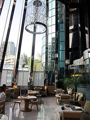其實今次是受酒店方面邀請前來試食, 上圖是餐廳外面的lobby位, 感覺悠閒舒適, 給人第一印象良好 ; 餐廳內則以暗黑同型格為主, 環境比預期中高雅舒適~~