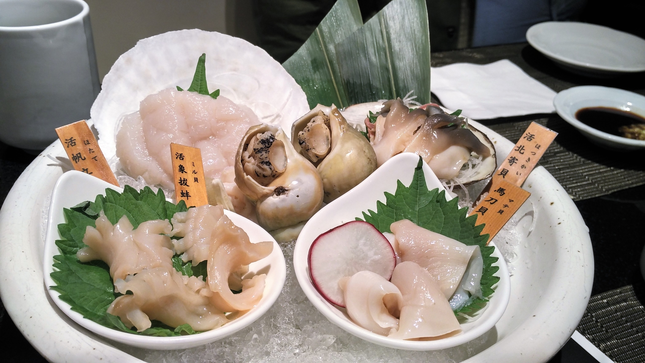 如果要用「鮮爽清甜」去形容呢個刺身拼盤,我會話鮮 = 活帆立貝;爽 = 馬刀貝;清 = 翡翠螺刺身;甜 = 活北寄貝、而活象拔蚌呢? 就係集合哂「鮮爽清甜」於一身嘅必食刺身。
