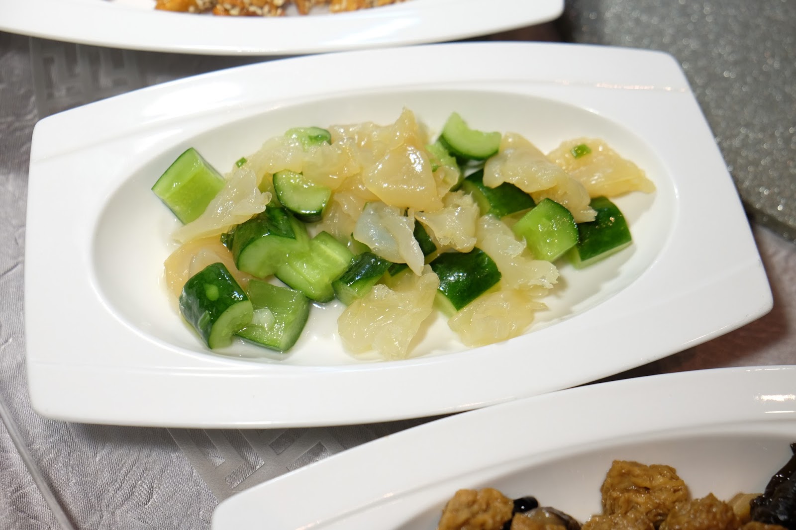 爽脆的海蜇多了一份蔥油的香氣,伴碟的青瓜,更是清新爽朗。