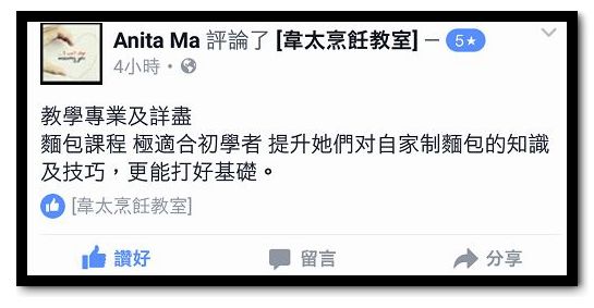 報讀韋太麵包及蛋糕(或月餅) 課程- 信心的保證 ! (學生網上評語)