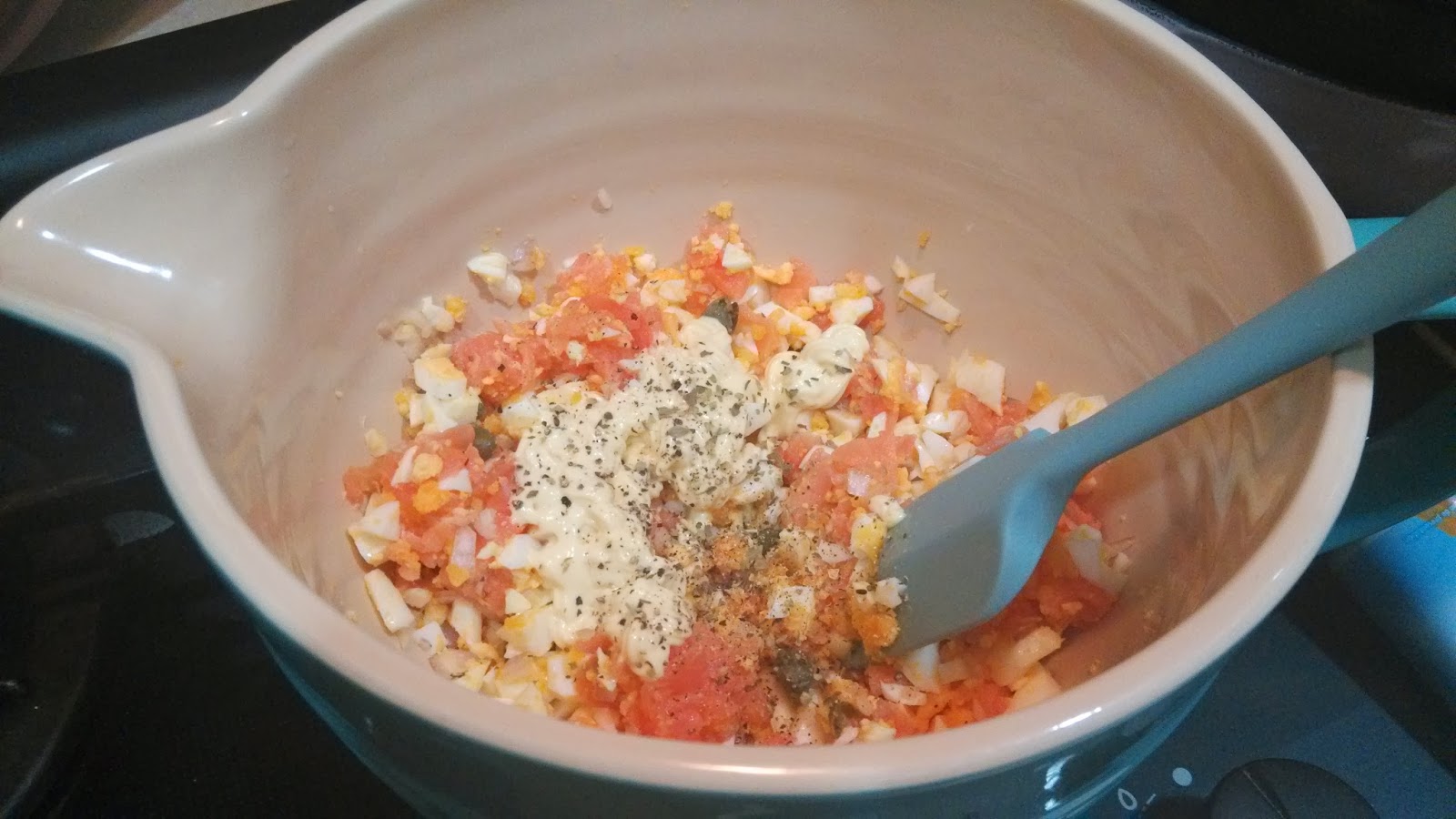 再加入蛋黃醬, 黑椒碎, 雜香草拌勻調味