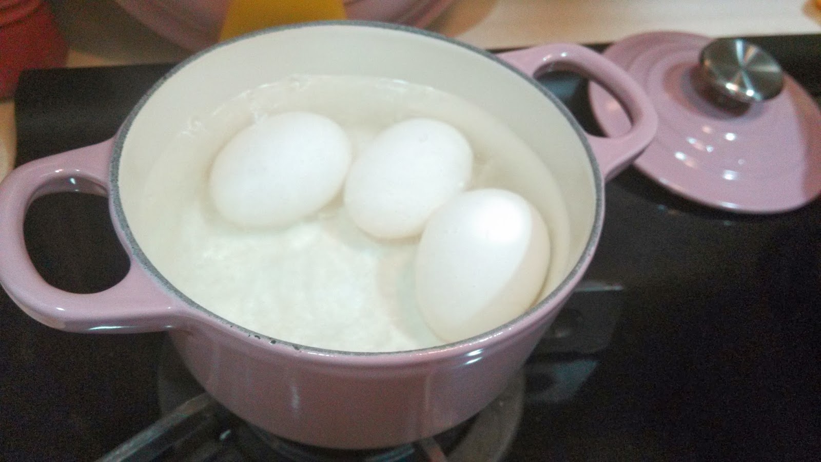 鍋加入蓋過雞蛋的水, 放入雞蛋, 開火, 水滾煮大約4分鐘,