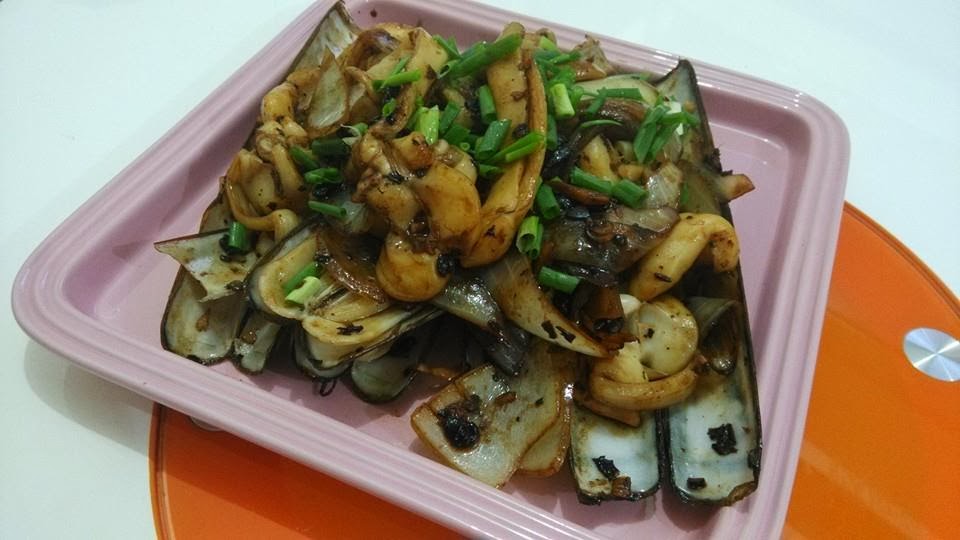 (1) 請海鮮檔幫忙劏蟶子皇, 回家後, 洗淨, 除去內臟, 瀝乾水份, 備用.