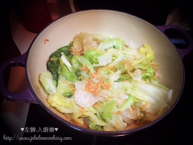 2015年4月17日(星期五) 清蒸櫻花蝦生菜鍋 (22cm 媽咪白裡鍋) 最近Le Creuset 粉絲都瘋買一本有關全用LC 鍋的COOKBOOK. 我.....當然也要一本啦...xd. 其中一個菜式, 就是這款, 在書中它取其菜式名: 清蒸美生菜 而我自己就改用了此名: 清蒸櫻花蝦生菜鍋 當中的做法, 我參考了後, 就用我自己的方法去完成. 生菜口感清脆, 又容易烹煮,... 看全文 -
