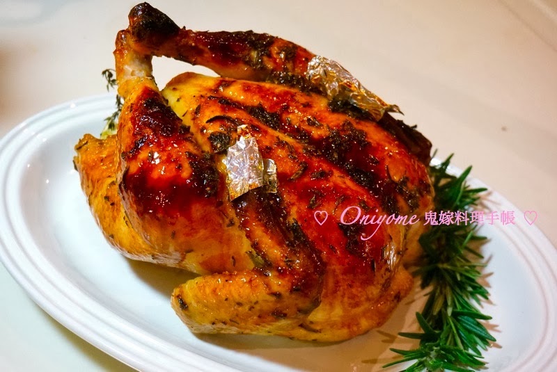 今次用了新方法來燒雞,就是把雞縛好才去烤, 特別是大雞,縛著來烤,不但讓雞肉能平均受熱,雞胸肉也較嫩滑,雞的型狀也能保持美美的,原隻上碟更好看,縛雞有幾種方法, 在藍帶學了要用粗針的方法,但比較難,一般家庭用這方法較易,當然直接烤,不縛繩也可以啦~ 烤完後的雞汁是精華,點雞肉超級好吃! 蜜糖和青檸,再加美美的金黃色,令人食欲大增,想要靚色就不能偷懶,要經常塗汁,留意烤色的變化,... 看全文