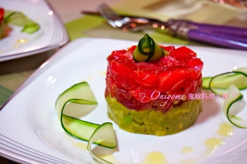 前幾天寫了吞拿魚和牛油果的食譜,今天來個混合版,這個牛油果他他和一般的不同,算是 Fusion 菜吧,因為加了日本豉油,口感更豐富,帶點日本刺身的鮮魚風味,較清爽,沒油膩的感覺。這道菜簡單好味道,又能出大場面,更可預先整好,用來做浪漫燭光晚餐的前菜一流。 材料: 吞拿魚刺身 200g 牛油果 1隻 吞拿魚調味料: 日本豉油 ... 看全文
