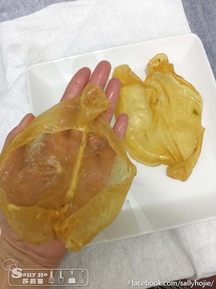 以前發花膠要浸焗三天, 現在海味店東主,教人用蒸焗法, 這樣做就不會走膠了,也試試,換水時不覺水有膠質, 證明這方法不錯,以後發花膠可用這方法。 普通煲湯,不太厚的花膠,先浸浸水,我浸半小時,未浸時硬身。 浸水後,蒸20分鐘,時間自行調整,因這花膠不太厚。 再浸回水,放雪柜,每天換水。 我只浸了24小時,花膠己大了,軟了。 大了1/3, 可用膠袋分開,雪在冰箱,用時才取出,放室溫即可。... 看全文 -